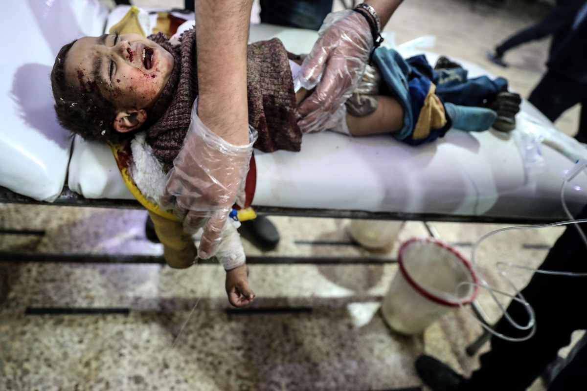 epaselect epa06580013 An injured child receives medical attention after bombing on rebels-held Douma, Eastern Ghouta, Syria, 04 March 2018. At least 31 people got killed today in Douma after bombing allegedly by forces loyal to the Syrian government. Four of them died with their injuries from bombings and shelling that occurred a day earlier. EPA/MOHAMMED BADRA