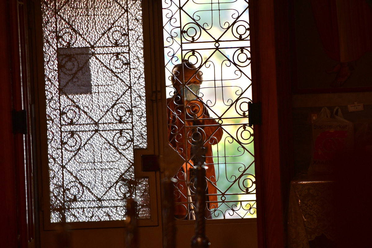 Πιστή φορώντας μάσκά προσώπου έξω από την εκκλησία της Αγίας Ειρήνης στη Νέα Κίο, την Τρίτη 5 Μαΐου 2020, Ανήμερα της εορτής της Αγίας Ειρήνης τελέσθηκε Αρχιερατική θεία λειτουργία χοροστατούντος του Μητροπολίτη Αργολίδος Νεκταρίου, ο οποίος κήρυξε και τον θείο λόγο κεκλεισμένων των θυρών για τους πιστούς, λόγω των μέτρων της κυβέρνησης για την εξάπλωση του κορονοϊού. Ο Ιερός Ναός της Αγίας Ειρήνης που είναι από τους μεγαλύτερους νέους Ναούς στην Αργολίδα έχει χωρητικότητα μεγαλύτερη των 1000 ατόμων και είναι κτισμένος στην Μικρασιατική κωμόπολη της Νέας Κίου που βρίσκεται μεταξύ Ναυπλίου και του Άργους. Η Αγία Μεγαλομάρτυς Ειρήνη έζησε κατά τον 4ο αιώνα μ.Χ. ΑΠΕ-ΜΠΕ /ΑΠΕ-ΜΠΕ/ΜΠΟΥΓΙΩΤΗΣ ΕΥΑΓΓΕΛΟΣ