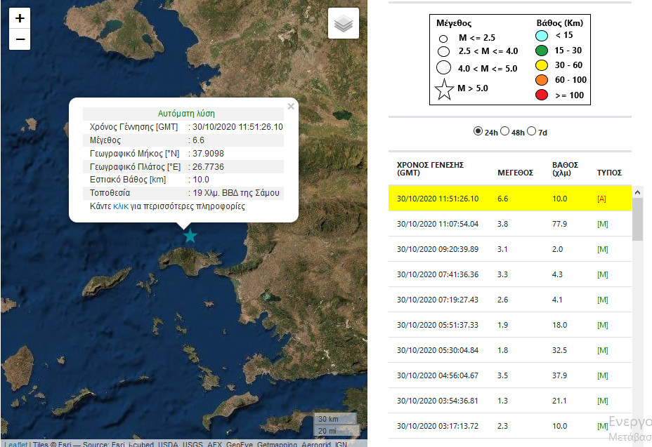 Σεισμός: 6,7 ρίχτερ βορειοδυτικά της Σάμου