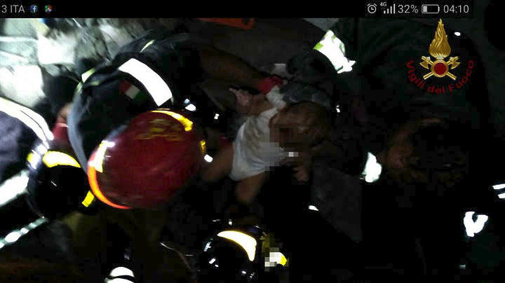 Τα σωστικά συνεργεία μετά από τιτάνιες προσπάθειες κατάφεραν να διασώσουν τον μόλις 7 μηνών Πασκουάλε που ήταν εγκλωβισμένος κάτω από τα χαλάσματα ενός σπιτιού που κατέρρευσε στο Κάζα Μιτσόλα της Ίσκια.