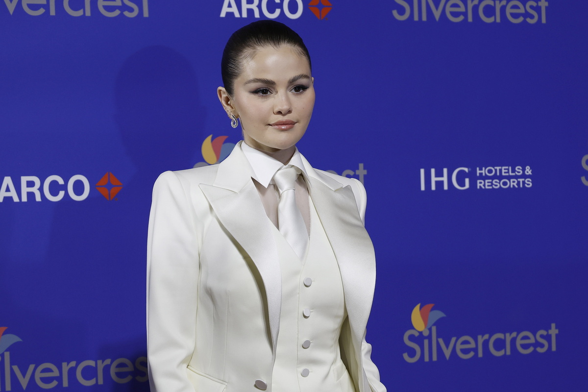 epa11804636 Selena Gomez poses on the red carpet at the 2025 Palm Springs International Film Festival Awards Night Gala at the Palm Springs Convention Center in Palm Springs, California, USA, 03 January 2025. EPA/NINA PROMMER