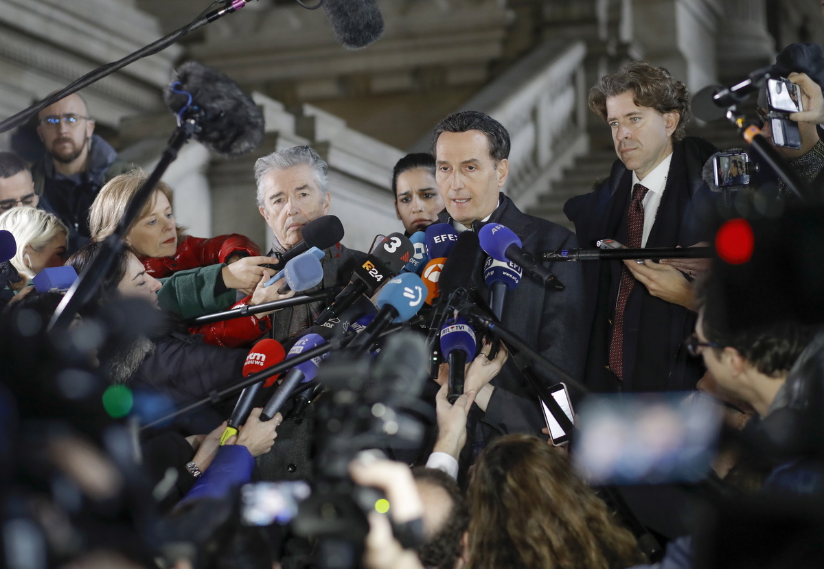 epa10376230 Michalis Dimitrakopoulos, lawyer of Eva Kaili, speaks to the media after a pre-trial court hearing in Brussels, Belgium, 22 December 2022. Kaili was dismissed on 13 December from the vice presidency of the European Parliament over allegations of corruption. The Greek MEP and three other suspects were arrested by Belgian police as part of an investigation into suspected corruption and money laundering. EPA/OLIVIER HOSLET