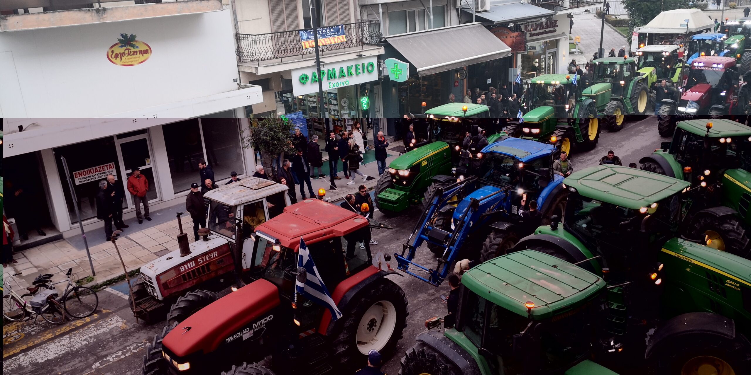 Δεκάδες αγρότες διέσχισαν σήμερα το μεσημέρι με τα τρακτέρ τους κεντρικούς δρόμους της πόλης των Τρικάλων.