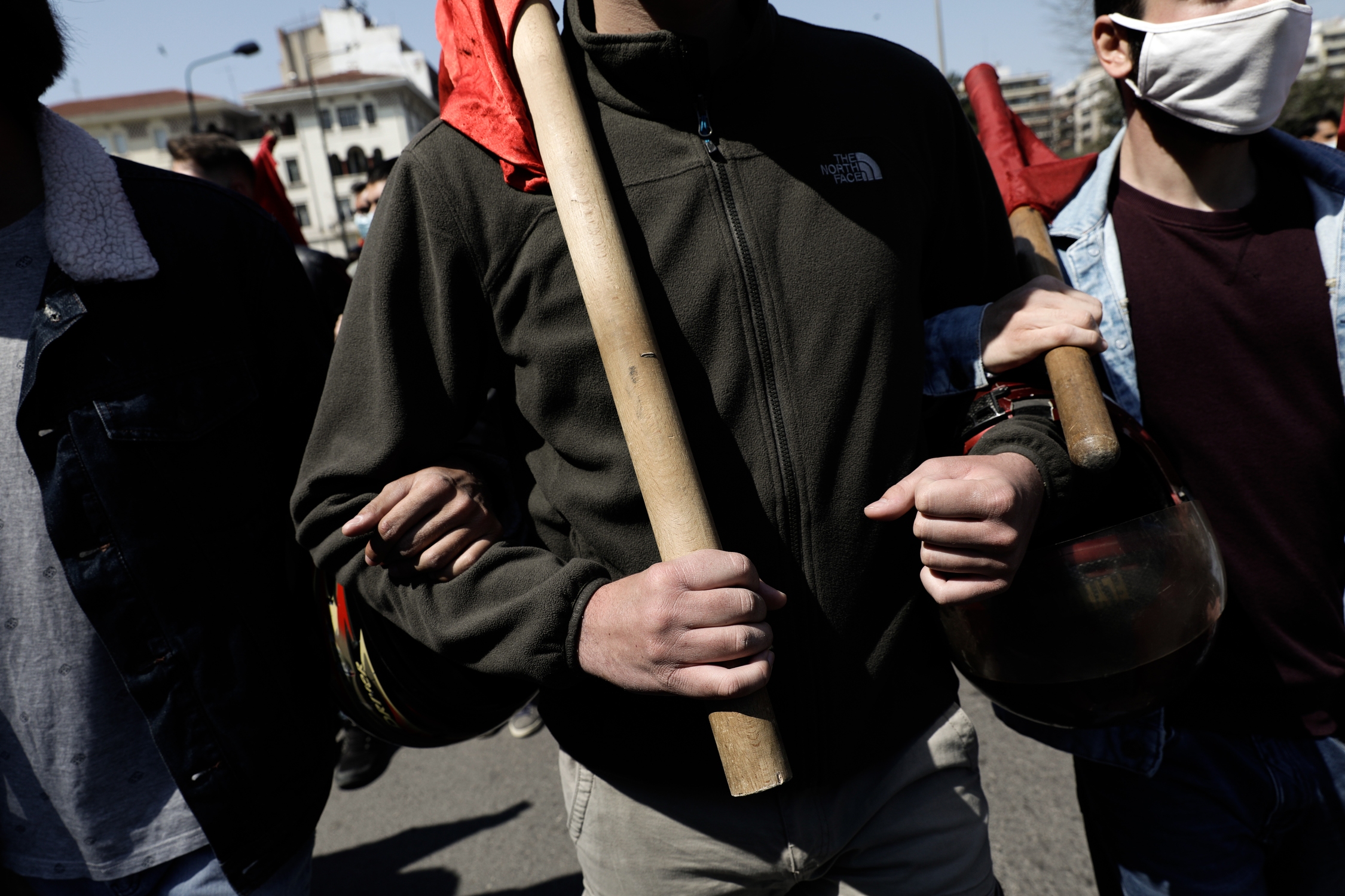 Protest rally by University students, against the new law by the Minister of Education, Niki Kerameos, that promotes, between others, university police in Higher Education, inThessaloniki, Greece on April 1, 2021 / Πορεία διαμαρτυρίας φοιτητών κατά του νομοσχεδιού της υπουργού παιδείας, Νίκη Κεραμέως, που μεταξύ άλλων προτείνει την δημιουργία πανεπιστημιακής αστυνομίας στα ΑΕΙ, Θεσσαλονίκη Θεσσαλονίκη, στις 1η Απρίλη 2021