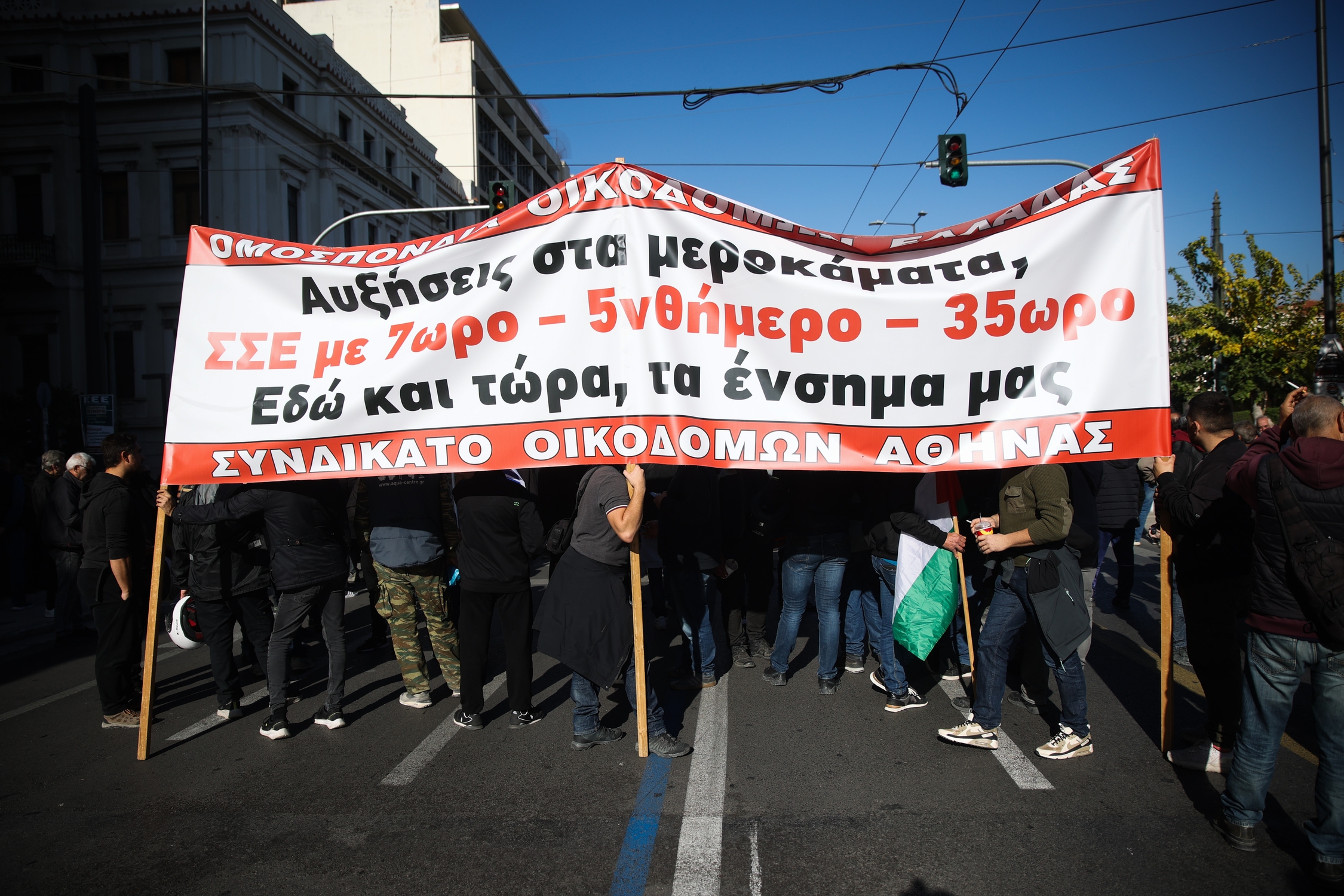 Με κεντρικό σύνθημα «θέλουμε αυξήσεις, για να ζήσουμε-Συλλογικές Συμβάσεις, για να προστατευτούμε-εργασία και ζωή με δικαιώματα», οι διαδηλωτές έδωσαν σαφές μήνυμα στην κυβέρνηση ότι δεν υπάρχουν περιθώρια ανοχών και αντοχών και πρέπει να ληφθούν άμεσα και ουσιαστικά μέτρα που θα εξασφαλίζουν αξιοπρεπή διαβίωση.