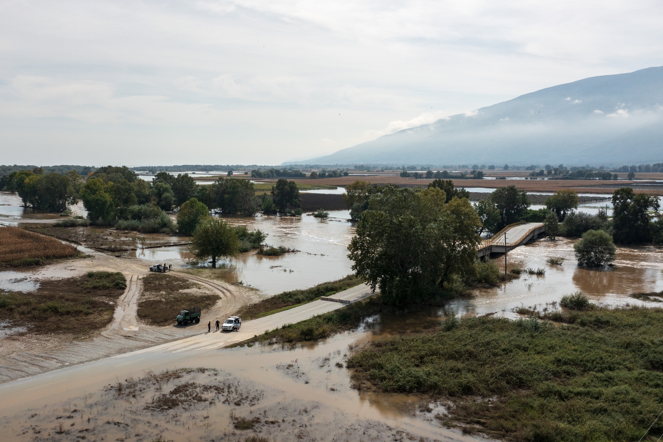 The collapsed bridge at Paleopyrgos of Larissa near the Pinios River Delta on the coast of Larissa, on September 14, 2023. / Η γκρεμισμένη γέφυρα στον Παλαιόπυργο Λάρισας κοντά στο Δέλτα του ποταμού Πηνειού στα παράλια της Λάρισας, 14 Σεπτεμβρίου 2023.
