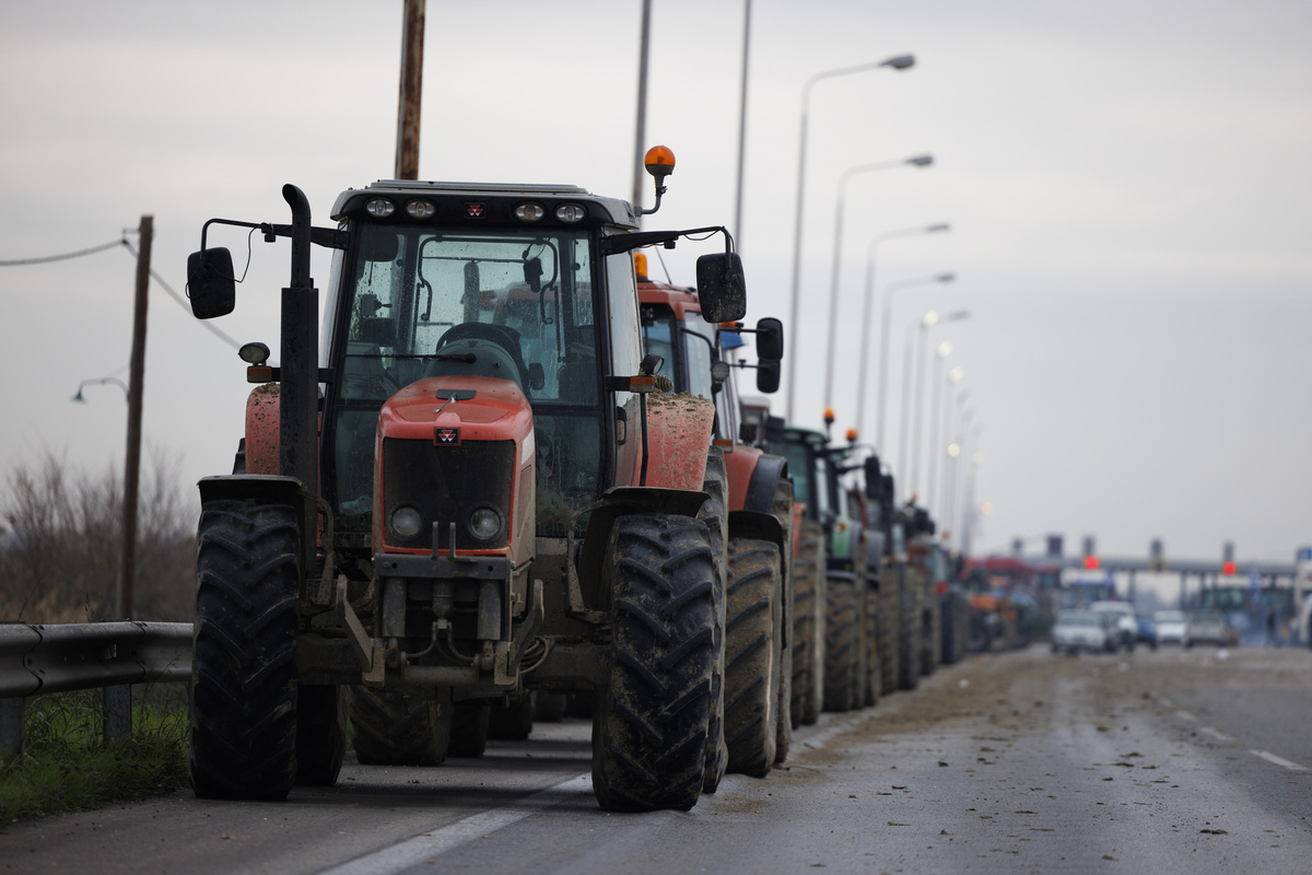 Παραταγμένα τρακτέρ στο μπλόκο στα διόδια Μαλγάρων, στο πλαίσιο των γενικευμένων κινητοποιήσεων από αγρότες σε όλη την Ελλάδα, Θεσσαλονίκη, Τέταρτη 3 Δεκεμβρίου 2025. Στα διόδια Μαλγάρων, επί της Εθνικής Οδού Θεσσαλονίκης-Αθήνας, αγρότες του Δήμου Δέλτα και της ευρύτερης περιοχής κρατούν από την 1η Δεκεμβρίου κλειστό το ρεύμα προς Αθήνα, ενώ εκείνο προς Θεσσαλονίκη ανοίγει και κλείνει περιοδικά. Από χθες, στο πλευρό τους βρίσκονται αυτοκινητιστές με τα φορτηγά τους, ενώ σήμερα αναμένονται και ιδιοκτήτες ταξί, οι οποίοι πραγματοποιούν 48ωρη απεργία έως το πρωί της Πέμπτης, στις 05:00. ΑΠΕ-ΜΠΕ/ΑΠΕ-ΜΠΕ/ΑΧΙΛΛΕΑΣ ΧΗΡΑΣ