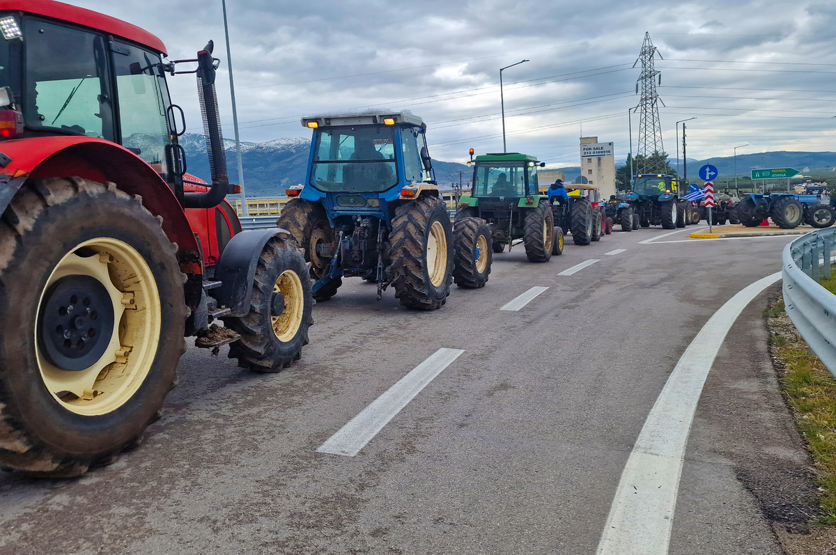 Αγρότες με τα τρακτέρ πραγματοποιούν διαμαρτυρία παράπλευρα στην Εθνική Οδό Αθηνών - Λαμίας στο ύψος της Αταλάντης, την Πέμπτη 1 Φεβρουαρίου 2024. Κλιμακώνουν τις κινητοποιήσεις τους οι αγρότες σε όλη τη χώρα. 300 τρακτέρ συγκεντρώθηκαν από διάφορες από διάφορες περιοχές της Κεντρικής Μακεδονίας στο Νότιο Τόξο του Διεθνούς Εκθεσιακού Κέντρου Θεσσαλονίκης, ενόψει των εγκαινίων της 30ής Διεθνούς Έκθεσης Γεωργικών Μηχανημάτων, Εξοπλισμού και Εφοδίων «Αgrotica». ΑΠΕ-ΜΠΕ/ΑΠΕ-ΜΠΕ/ΑΡΗΣ ΜΑΡΤΑΚΟΣ