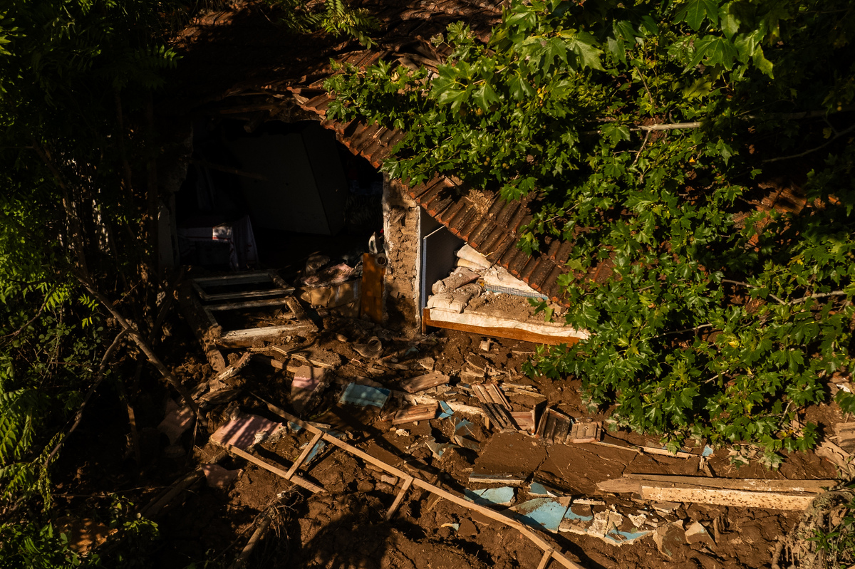 Φωτογραφία που δόθηκε στη δημοσιότητα την Δευτέρα 11 Σεπτεμβρίου 2023 από drone και εικονίζει γκρεμισμένο σπίτι στα Μεγάλα Καλύβια στα Τρίκαλα, μετά τις καταστροφικές πλημμύρες που προκάλεσε η κακοκαιρία Daniel, την Κυριακή 10 Σεπτεμβρίου 2023. ΑΠΕ-ΜΠΕ/ΑΠΕ-ΜΠΕ/ΑΧΙΛΛΕΑΣ ΧΗΡΑΣ
