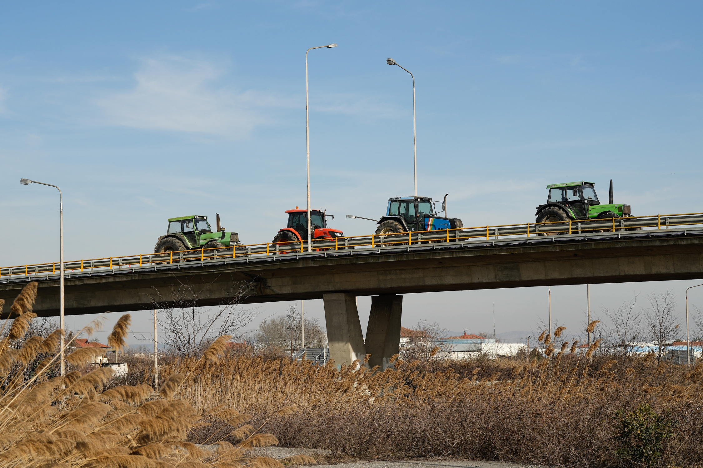 Short-term closure of the Athens-Thessalonica National Highway, in the direction of Thessaloniki, just before the Malgara toll, by farmers who have their tractors lined up on the side roads of the National Highway, Malgara, February 7, 2024. / Ολιγόλεπτο κλείσιμο της Εθνικής Οδού Αθηνών - Θεσσαλονίκης, στο ρεύμα προς Θεσσαλονίκη, λίγο πριν τα διόδια των Μαλγάρων, από αγρότες που έχουν τα τρακτέρ τους παραταγμένα σε παράδρομους της Εθνικής Οδού, Μάλγαρα, 7 Φεβρουαρίου 2024.