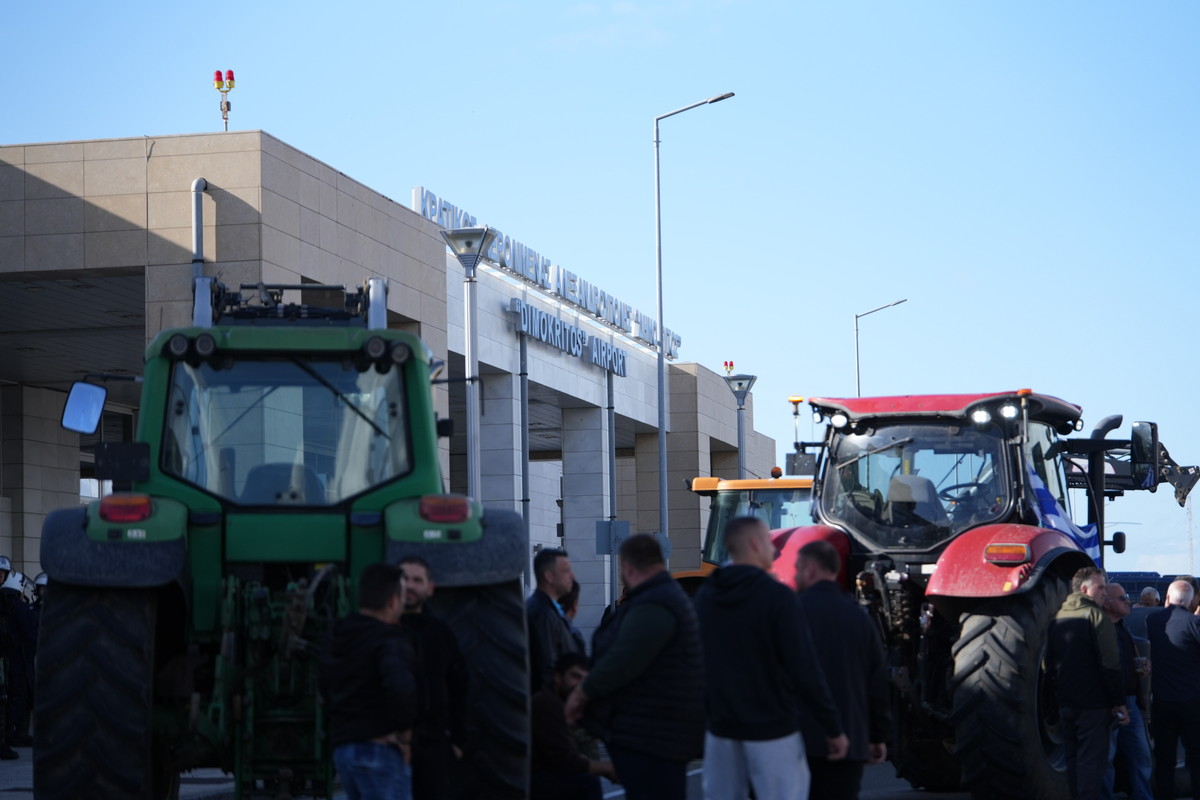 Αγρότες και κτηνοτρόφοι συγκεντρώθηκαν από χθες Δευτέρα (10/11) με τρακτέρ έξω από το αεροδρόμιο Αεροδρόμιο της Αλεξανδρούπολης «Δημόκριτος», διαμηνύοντας ότι ο πρωθυπουργός Κυριάκος Μητσοτάκης είναι «ανεπιθύμητος».