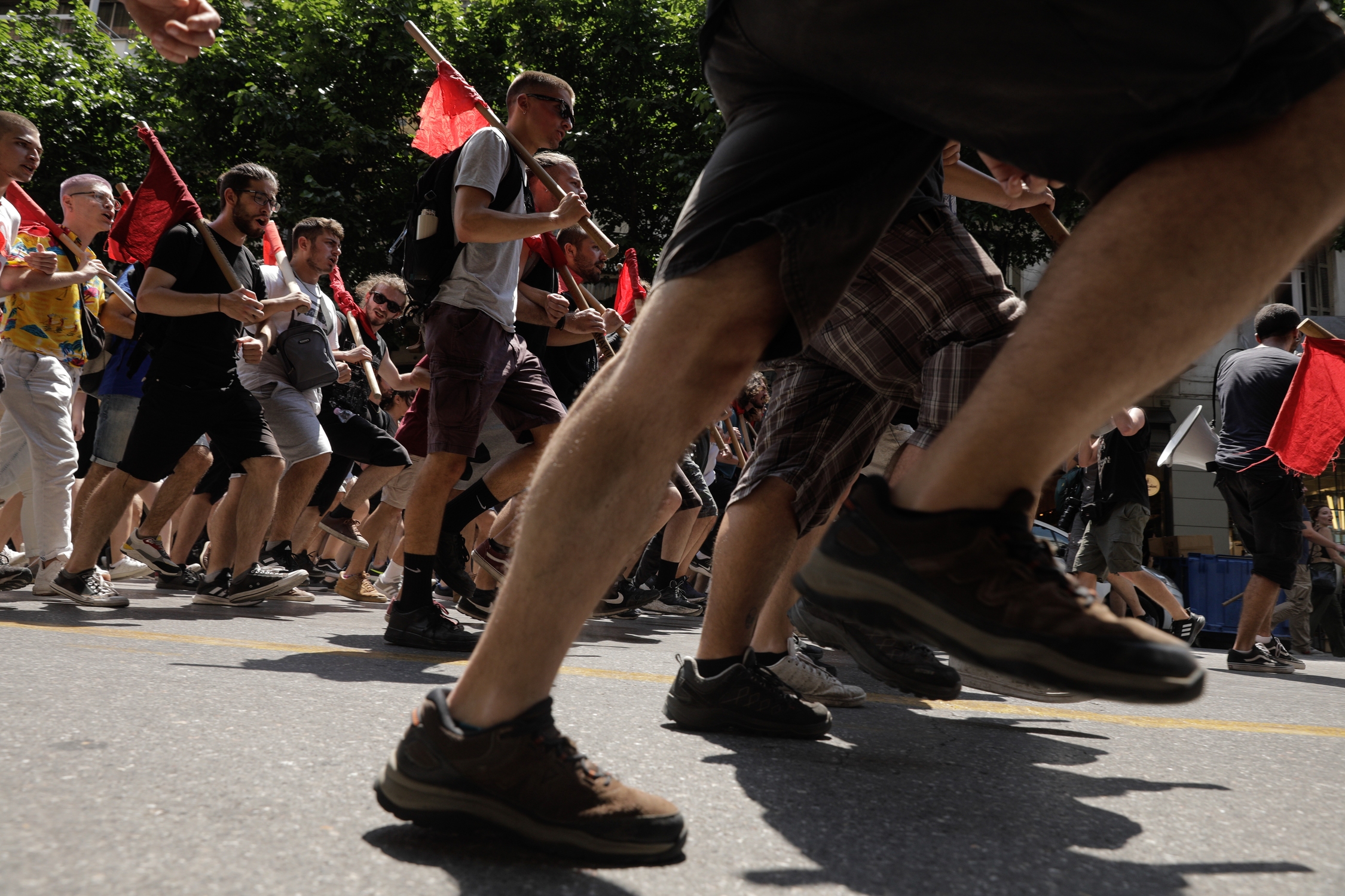 Students protest against the police presence on the university campus on the occasion of the renovation of the ground floor of the biological department (former “Steki sto Viologiko”) and its use for the creation of a library of the School of Sciences, AUTh, Thessaloniki, Greece on June 2, 2022. / Διαμαρτυρία φοιτητών κατά της αστυνομικής παρουσίας στο πανεπιστημιακό campus με αφορμή την ανάπλαση του ισογείου του βιολογικού (πρώην «Στέκι στο Βιολογικό») και αξιοποίησή του για τη δημιουργία ενιαίας βιβλιοθήκης της ΣΘΕ, ΑΠΘ, Θεσσαλονίκη, 2 Ιουνίου 2022.