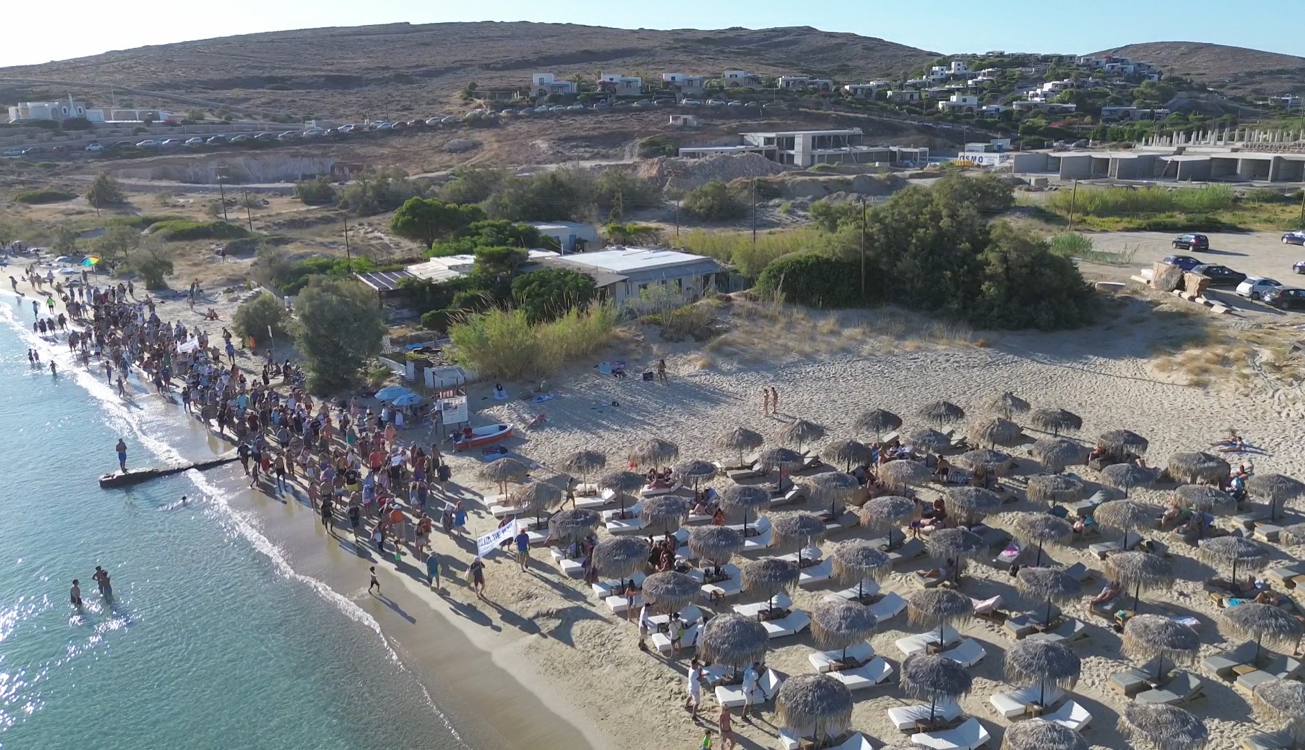 Συγκεκριμένα, στην παραλία Μαρτσέλο της Παροικιάς πραγματοποίησε την Κυριακή (30/7) η συλλογικότητα πολιτών του νησιού «Κίνηση Πολιτών Πάρου για τις Παραλίες» που διεκδικεί ελεύθερες παραλίες για όλους, όπως γράφει χαρακτηριστικά και στο πανό πίσω από το οποίο ακολουθούσε η πορεία στην παραλία.