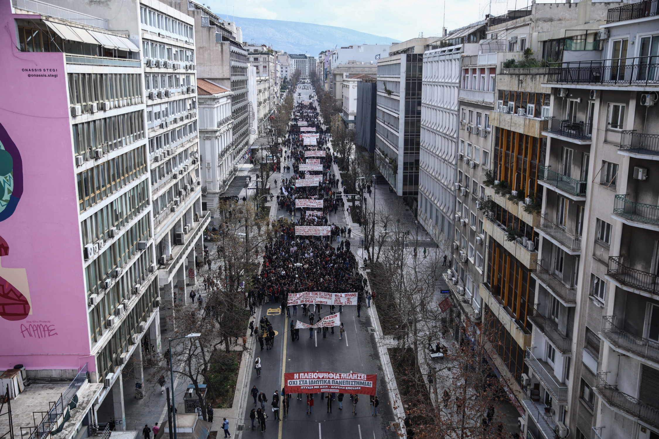 Students demonstrate against the privatization of the public education system, outside the Ministry of Eductaion, in Athens, on February 22, 2024 / Διαμαρτυρία φοιτητών κατά της ίδρυσης μη κρατικών πανεπιστημίων, έξω απο το Υπουργείο Παιδείας, στις 22 Φεβρουαρίου, 2024