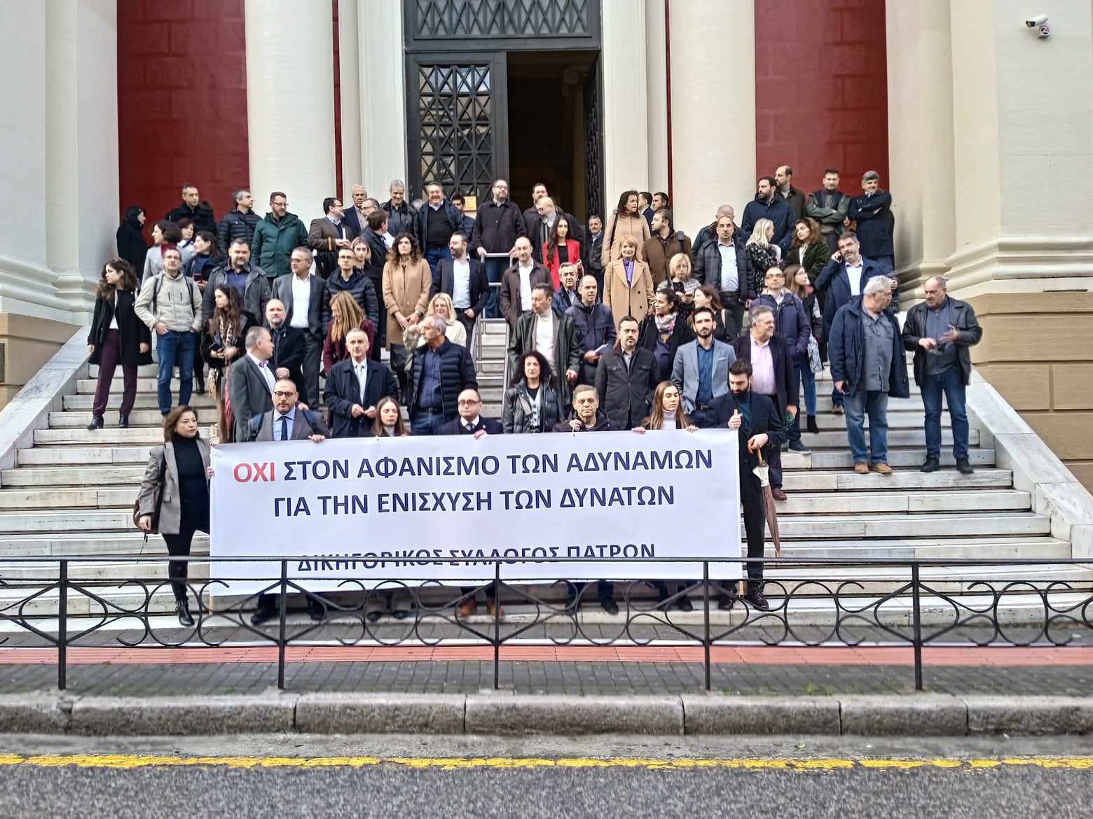Συγκέντρωση διαμαρτυρίας κατά του νέου φορολογικού νομοσχεδίου πραγματοποίησαν σήμερα το πρωί οι δικηγόροι της Πάτρας έξω από το δικαστικό μέγαρο της πόλης.