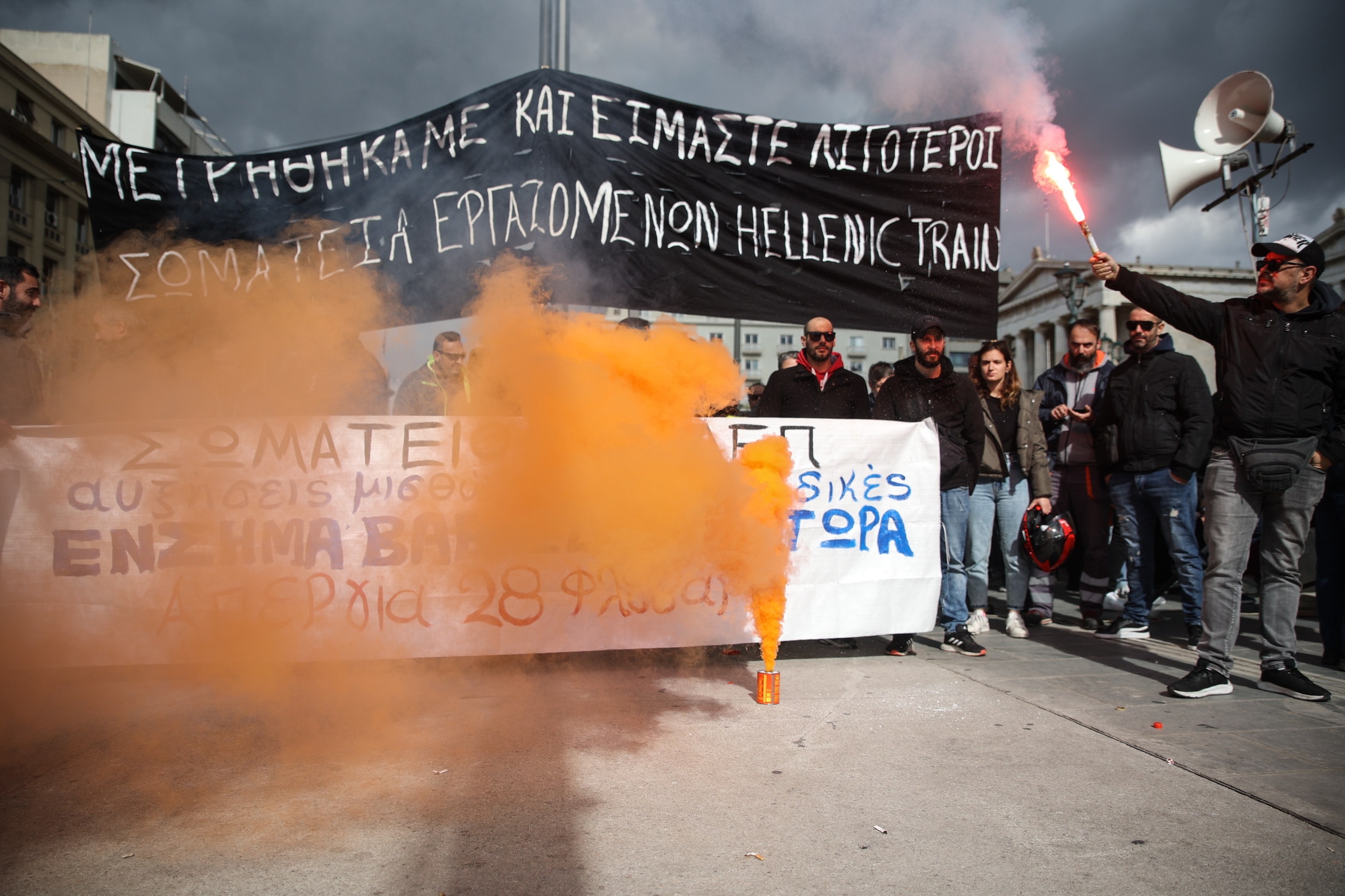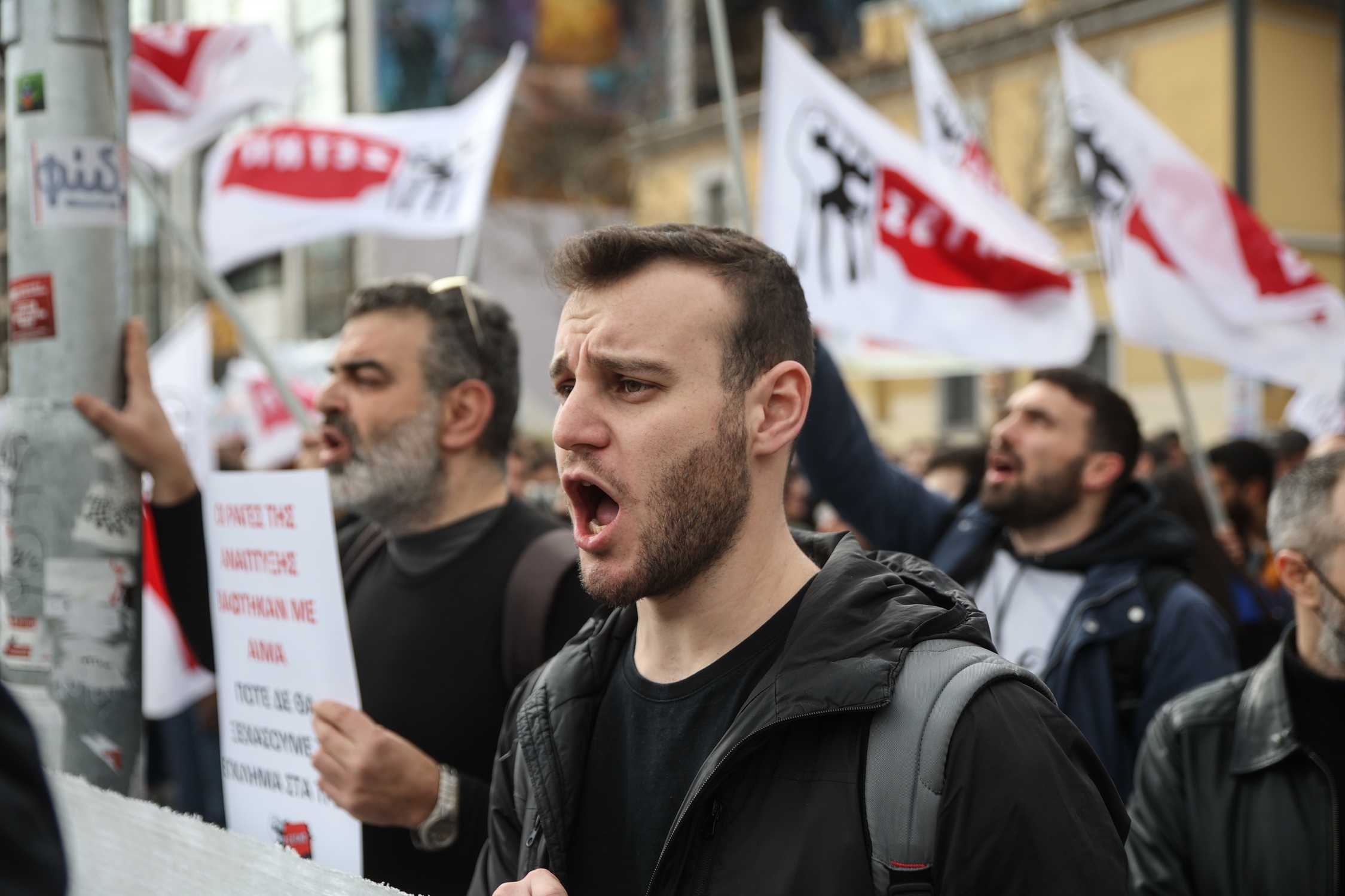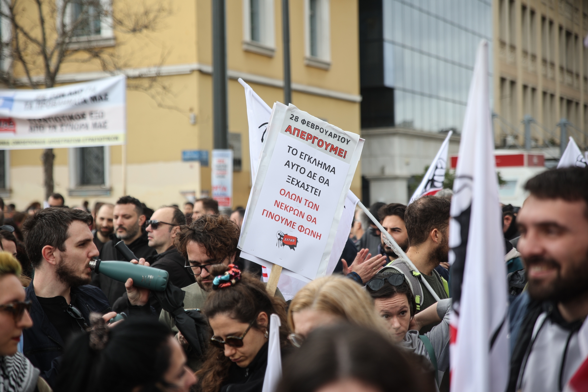 Με ενός λεπτού σιγή στη μνήμη των νεκρών της τραγωδίας στα Τέμπη ξεκίνησε η μεγάλη απεργιακή συγκέντρωση Εργατικών Κέντρων-Ομοσπονδιών-Συνδικάτων στα Προπύλαια.