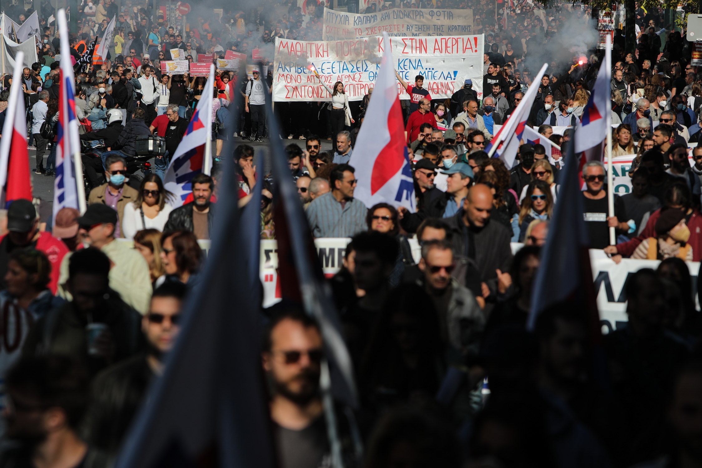 Διαδήλωση κατα την διάρκεια 24ωρης γενικής απεργίας που προκήρυξαν τα συνδικάτα του ιδιωτικού και του δημόσιου τομέα για την ακρίβεια και το υψηλό κόστος διαβίωσης, Αθήνα, Τετάρτη, 9 Νοεμβρίου, 2022.