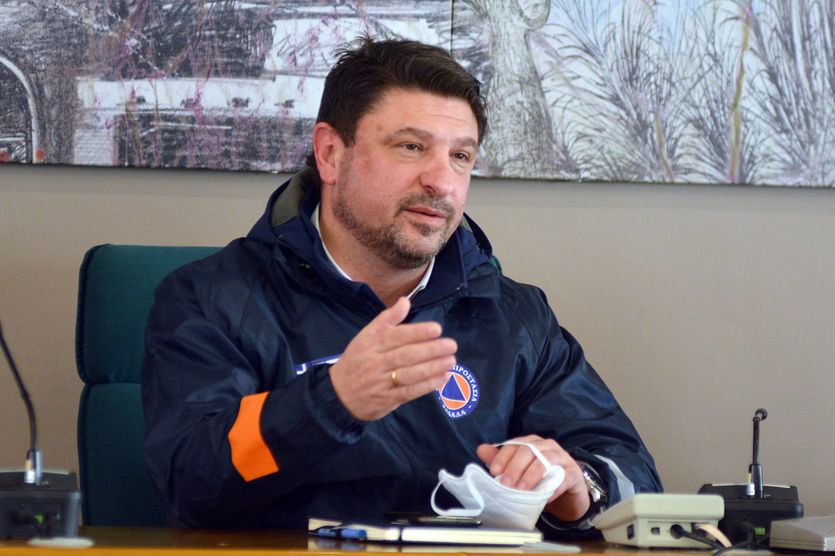 Ο υφυπουργός Πολιτικής Προστασίας Νίκος Χαρδαλιάς συμμετέχει σε ευρεία σύσκεψη που πραγματοποιήθηκε στην Περιφέρεια Θεσσαλίας στη Λάρισα, Παρασκευή 10 Απριλίου 2020. Κυβερνητικό κλιμάκιο, στο οποίο συμμετέχουν ο υφυπουργός Πολιτικής Προστασίας Νίκος Χαρδαλιάς, ο εκπρόσωπος του υπουργείου Υγείας, καθηγητής λοιμωξιολογίας Σωτήρης Τσιόδρας και ο υφυπουργός Εσωτερικών Θεόδωρος Λιβάνιος, μετέβη στην περιοχή της Νέας Σμύρνης στη Λάρισα, η οποία έχει τεθεί σε καραντίνα μετά τον εντοπισμό 20 κρουσμάτων κορονοϊού, Covid-19 στον οικισμό των ρομά της περιοχής, προκειμένου να συντονίσει τις ενέργειες για την αποτροπή της μετάδοσης του ιού σε μεγάλο αριθμό του πληθυσμού. ΑΠΕ-ΜΠΕ/ΑΠΕ-ΜΠΕ/ΑΠΟΣΤΟΛΗΣ ΝΤΟΜΑΛΗΣ