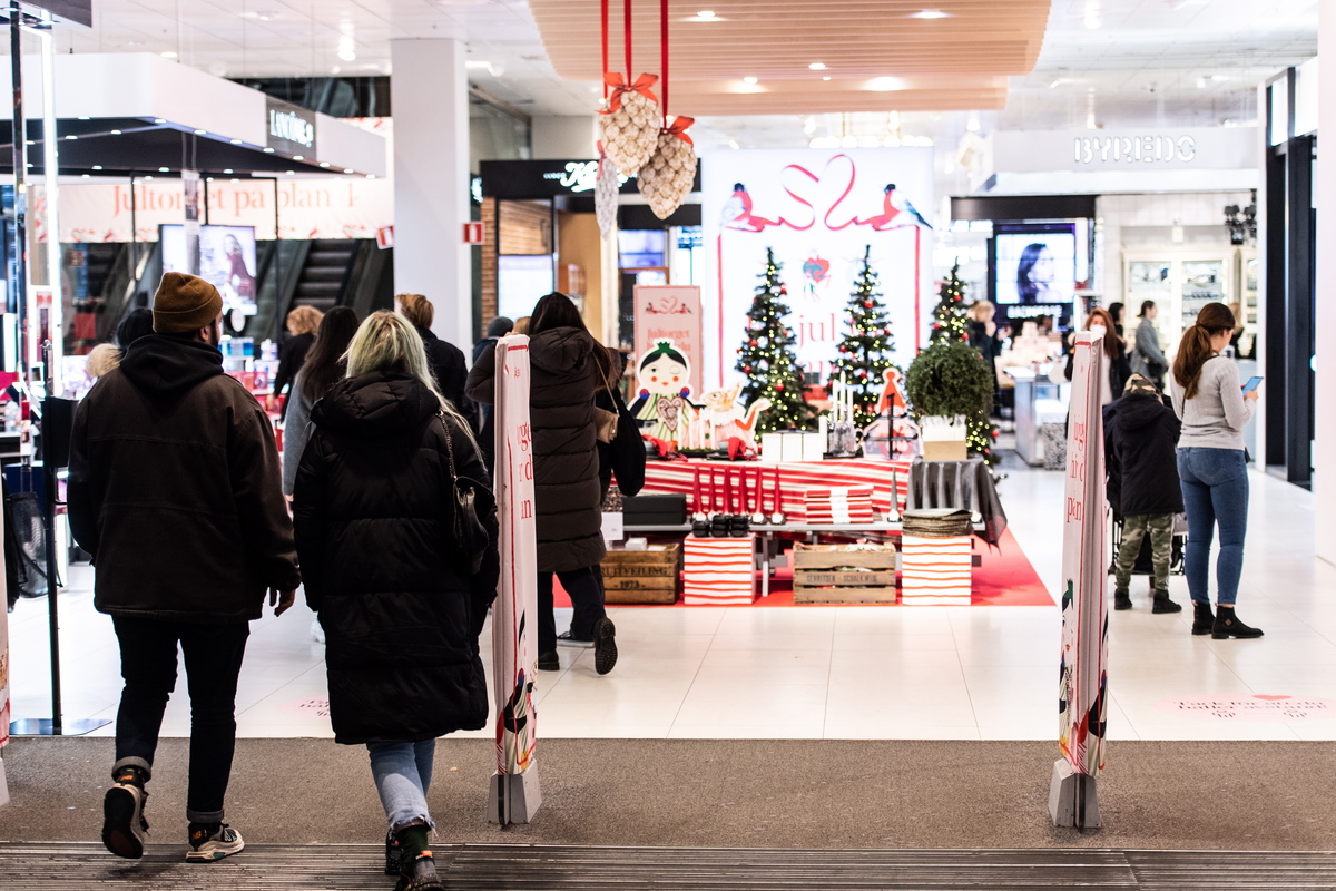 epa08813874 Customers enter the Christmas decorated department store Ahlens, amid continous spread of the coronavirus disease (COVID-19) pandemic, in central Stockholm, Sweden, 11 November 2020. EPA/AMIR NABIZADEH SWEDEN OUT