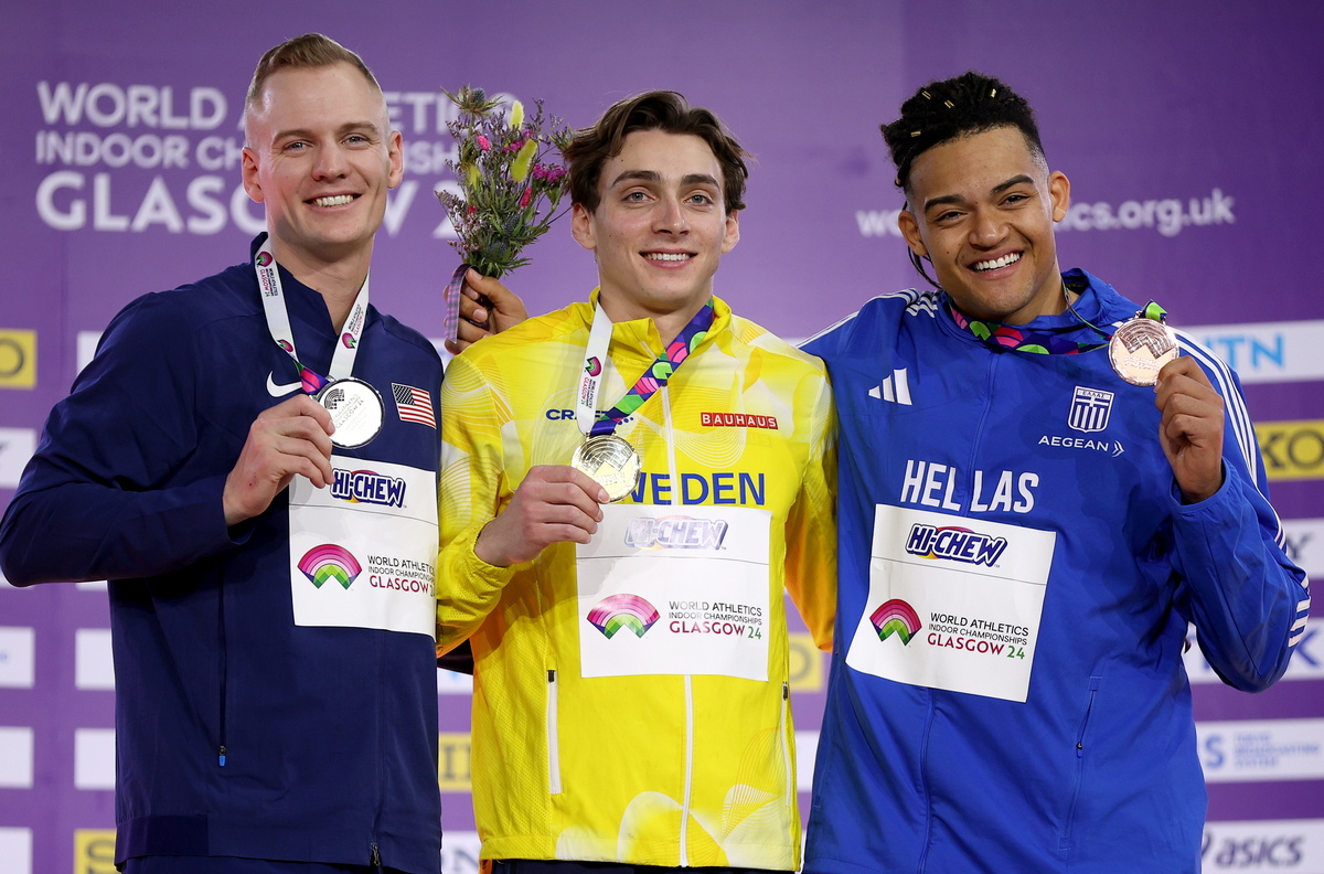 Με το χάλκινο που κατέκτησε ο Εμμανουήλ Καραλής στο άλμα επί κοντώ στη Γλασκώβη (είχε προηγηθεί το χρυσό του Μίλτου Τεντόγλου στο μήκος), η Ελλάδα έφτασε τα 15 μετάλλια (επτά χρυσά, δύο ασημένια και έξι χάλκινα) στην ιστορία του Παγκοσμίου πρωταθλήματος κλειστού στίβου.