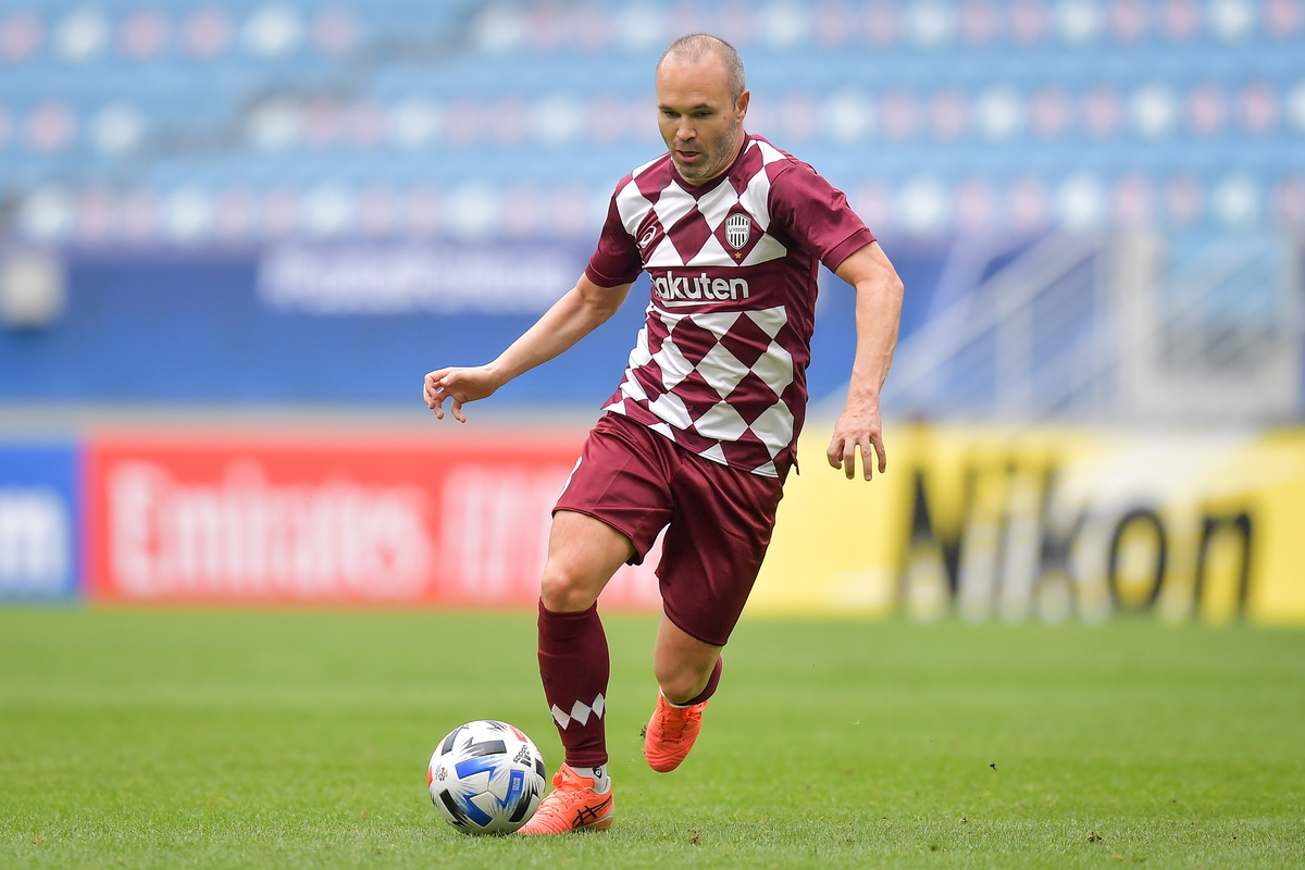 epa08848002 Andres Iniesta of Kobe in action during the AFC Champions League group G match between Vissel Kobe and Guangzhou Evergrande at Al-Janoub Stadium in Al-Wakrah, Qatar, 28 November 2020. EPA/NOUSHAD THEKKAYIL