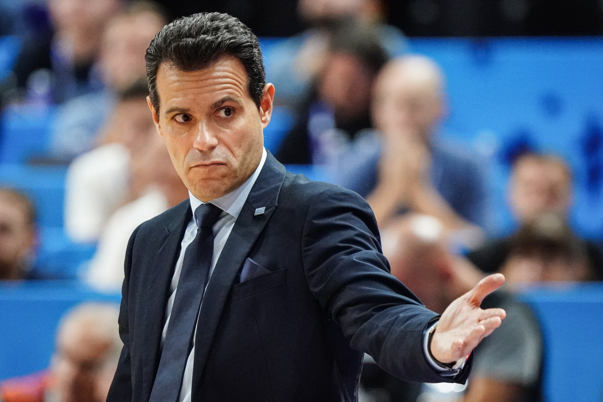 epa10182338 Greece's head coach Dimitrios Itoudis gestures during the FIBA EuroBasket 2022 Quarter Finals match between Germany and Greece at the EuroBasket Arena Berlin, in Berlin, Germany, 13 September 2022. EPA/CLEMENS BILAN