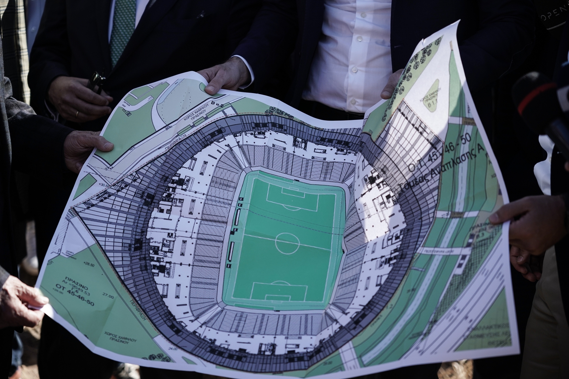 Συνέντευξη τύπου για τη δημοπράτηση του νέου γηπέδου του Παναθηναικού στο Βοτανικό , στο χώρο ανέγερσης του γηπέδου, Αθήνα , 17 Οκτωβρίου , 2022