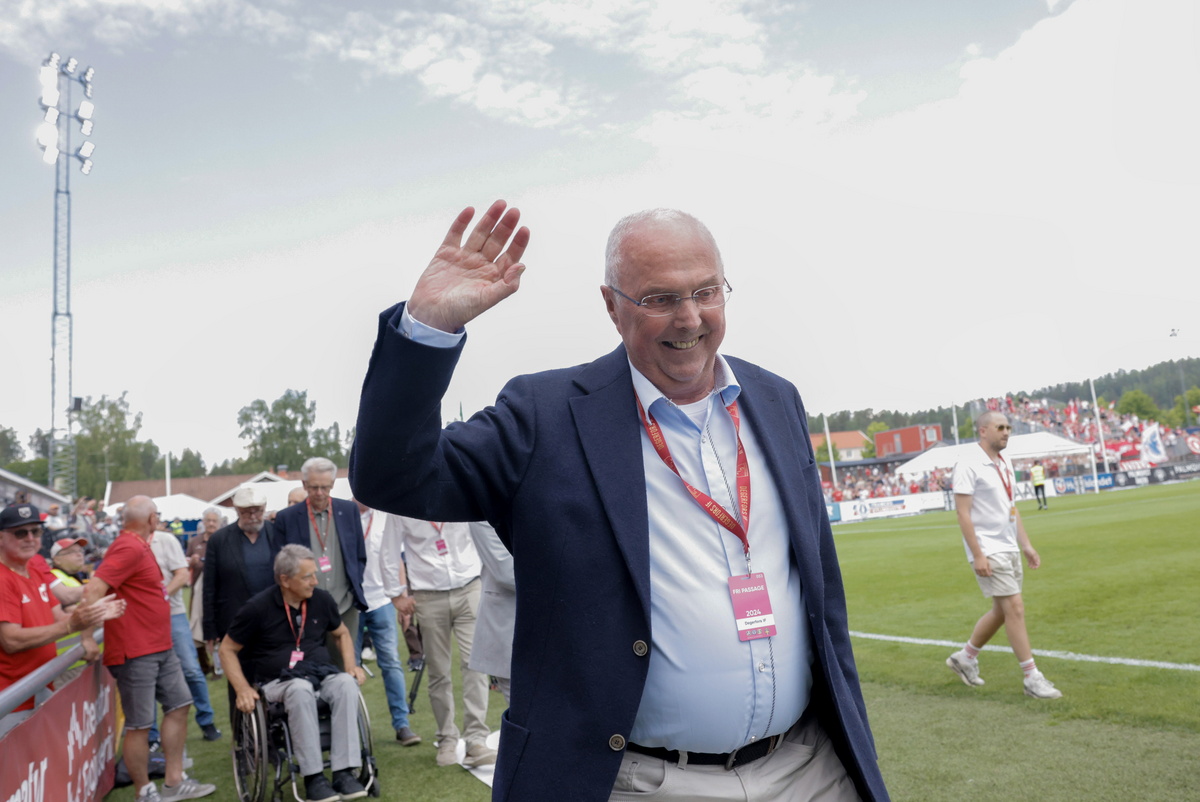 epa11383518 Former manager of England national soccer team Sven-Goran "Svennis" Eriksson is celebrated for his efforts in Degerfors IF in connection with the soccer match between Degerfors IF and Utsiktens BK at Stora Valla in Degerfors, Sweden, on June 01, 2024. Eriksson started as assistant coach in Degerfors in 1976, and became head coach in 1977. EPA/Kicki Nilsson SWEDEN OUT