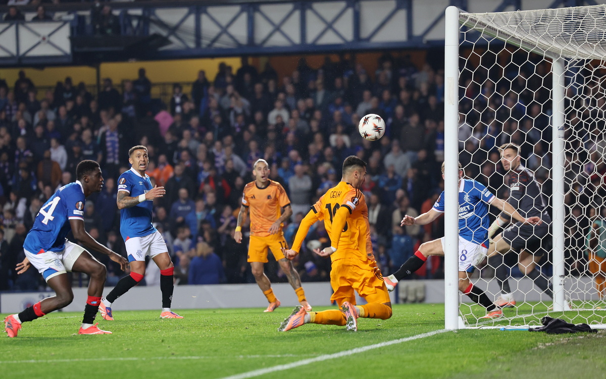 epa12509247 XXXX of Rangers in action against YYYY of Roma during the UEFA Europa League league phase match between Rangers FC and AS Roma, in Glasgow, Scotland, Britain, 06 November 2025. EPA/ROBERT PERRY