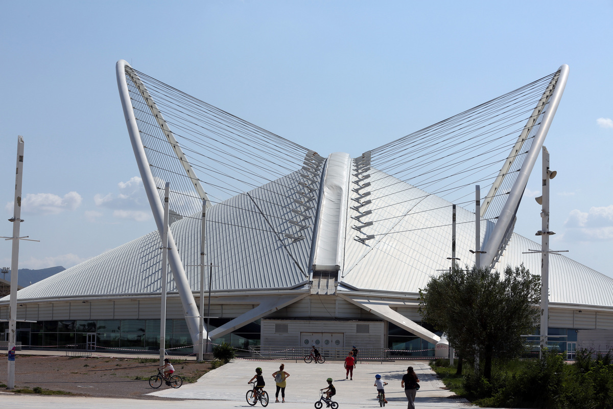 Λεπτομέρεια από το στέγαστρο Καλατράβα στο Ποδηλατοδρόμιο στην Καλογρέζα, Κυριακή 1 Οκτωβρίου 2023. Ανακοινώθηκε ότι το ΟΑΚΑ κλείνει το κεντρικό του στάδιο και το ποδηλατοδρόμιο λόγω μελέτης που βλέπει προβλήματα στατικότητας στα στέγαστρα Καλατράβα των δύο σταδίων. ΑΠΕ-ΜΠΕ/ΑΠΕ-ΜΠΕ/Αλέξανδρος Μπελτές