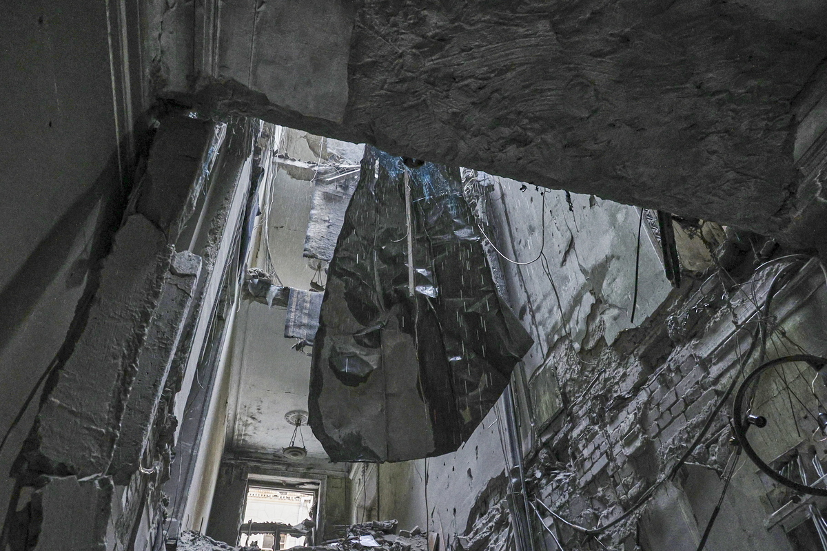 epa09794044 Interior view of the damaged Kharkiv regional administration building in the aftermath of a shelling in downtown Kharkiv, Ukraine, 01 March 2022. Russian troops entered Ukraine on 24 February prompting the country's president to declare martial law and triggering a series of announcements by Western countries to impose severe economic sanctions on Russia. EPA/SERGEY KOZLOV