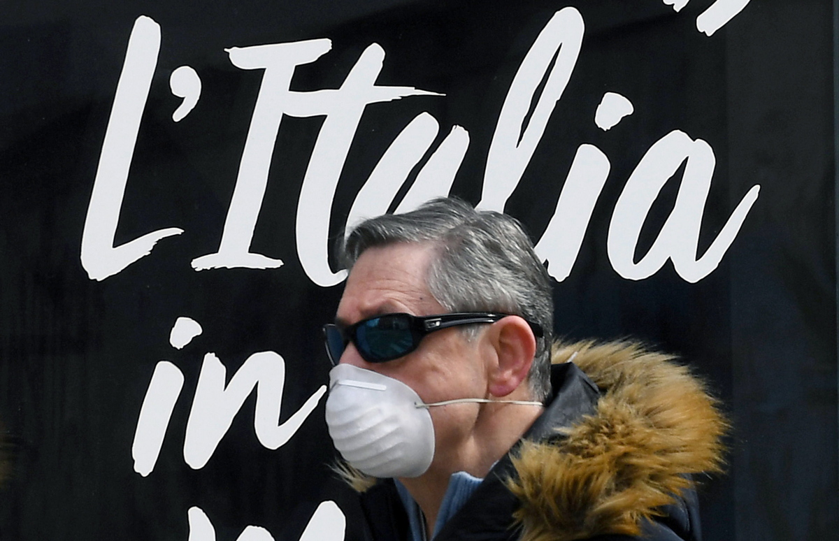 epa08326824 A man wearing a protective mask walks in the center of Milan during the nationwide lockdown mesures, Milan, Italy, 27 March 2020. Countries around the world take measures to stem the widespread of the SARS-CoV-2 coronavirus which causes the Covid-19 disease. EPA/DANIEL DAL ZENNARO