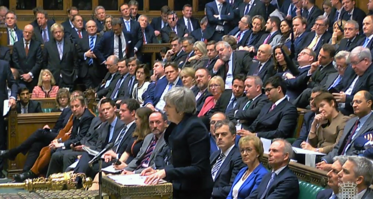 epa07287573 A handout video-grabbed still image from a video made available by UK parliament's parliamentary recording unit shows Britain's Prime Minister Theresa May speaking prior to the Meaningful Vote at the parliament late 15 January 2018, London, United Kingdom, the crucial vote on whether to support or reject Theresa May's deal of UK leaving the European Union. The legally-binding Withdrawal Agreement sets up a 'transition or implementation period' that runs until the end of 2020 after Brexit. The United Kingdom, that on 01 January 1973 joined EEC or European Communities, predecessor of European Union, has been a EU member state for 46 years. EPA/PARLIAMENTARY RECORDING UNIT HANDOUT MANDATORY CREDIT: PARLIAMENTARY RECORDING UNIT HANDOUT EDITORIAL USE ONLY/NO SALES