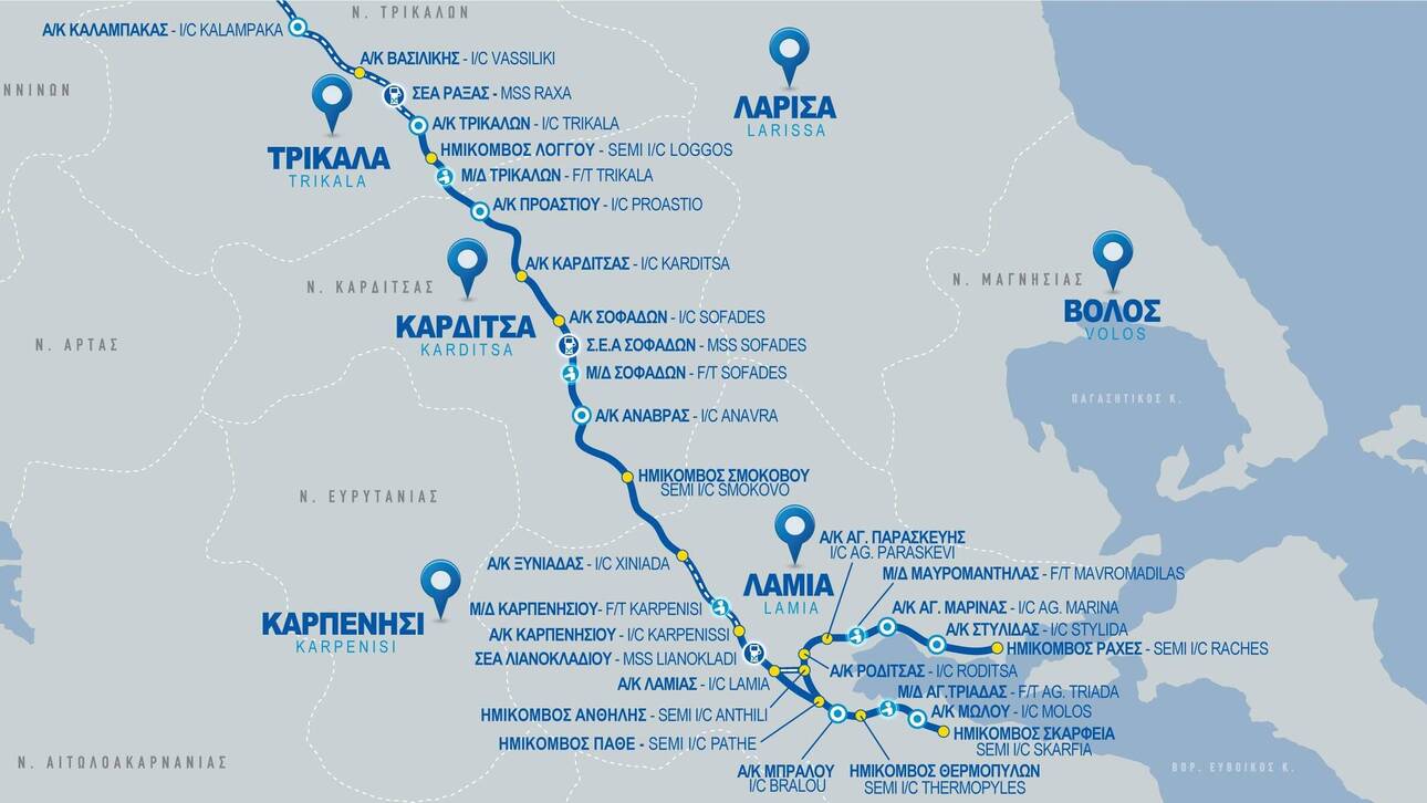 Το τμήμα που θα δοθεί σήμερα στην κυκλοφορία ξεκινά από τον κόμβο του ΠΑΘΕ και εκτείνεται μέχρι τον κόμβο Καπερνησίου παρακάμπτοντας την πόλη της Λαμίας.