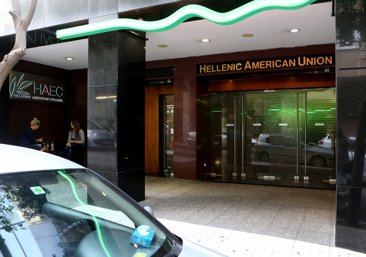 Η είσοδος της Ελληνοαμερικανικής Ένωσης στην οδό Μασσαλίας, όπου νωρίς το πρωί αντιεξουσιαστές εισέβαλαν και ανήρτησαν πανό, Δευτέρα 26 Σεπτεμβρίου 2016. ΑΠΕ-ΜΠΕ/ΑΠΕ-ΜΠΕ/Παντελής Σαίτας