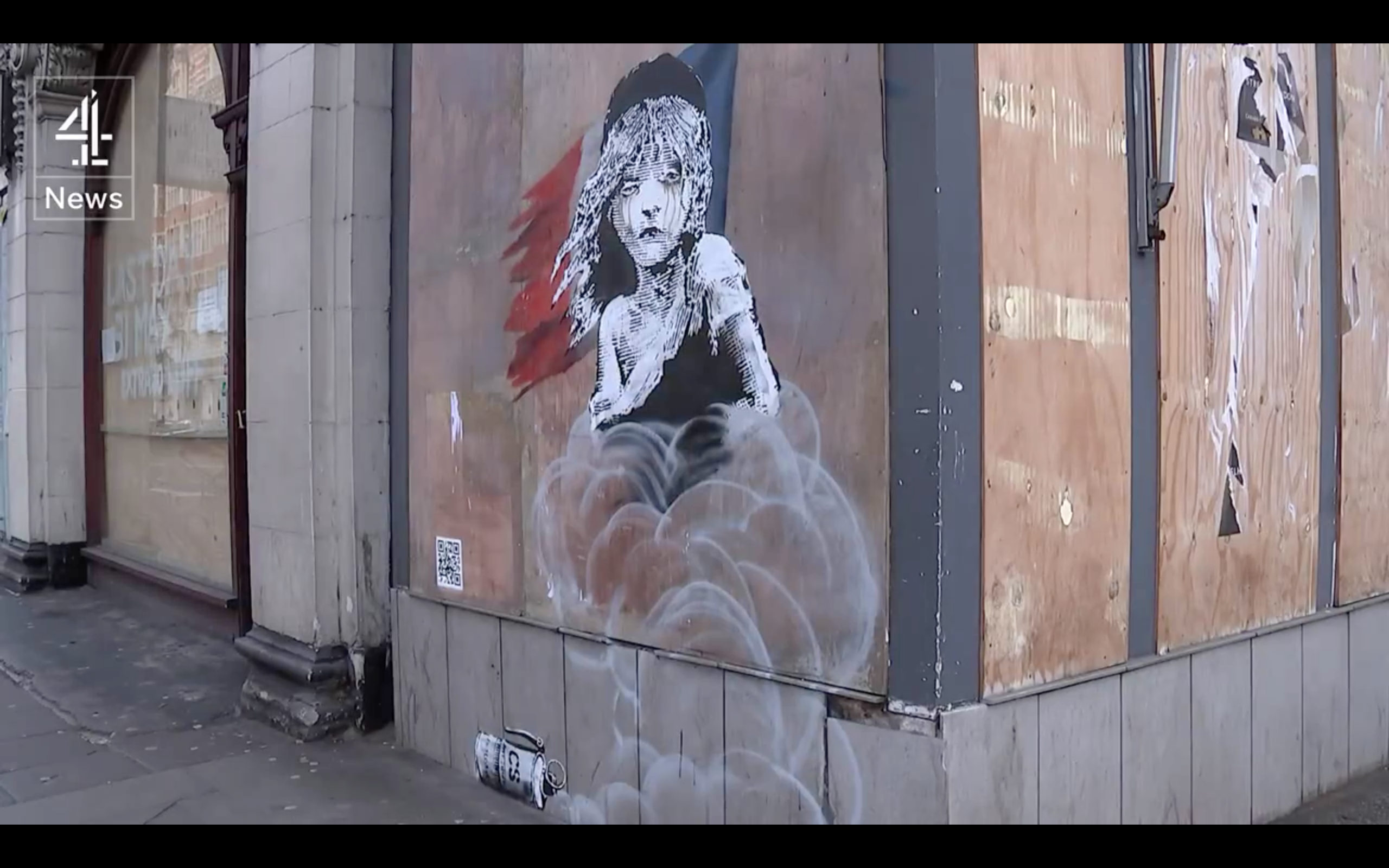Κοντά στην γυναικεία μορφή βρίσκεται ένα QR code του Banksy, που παραπέμπει σε ένα βίντεο στο YouTube με τίτλο Calais Jungle police assults.Το βίντεο παρουσιάζει «επιθέσεις της αστυνομίας με δακρυγόνα, πλαστικές σφαίρες και αντλίες εκτόξευσης νερού στην κύρια είσοδο της Ζούγκλας», του κέντρου φιλοξενίας προσφύγων στο Καλαί της Γαλλίας.