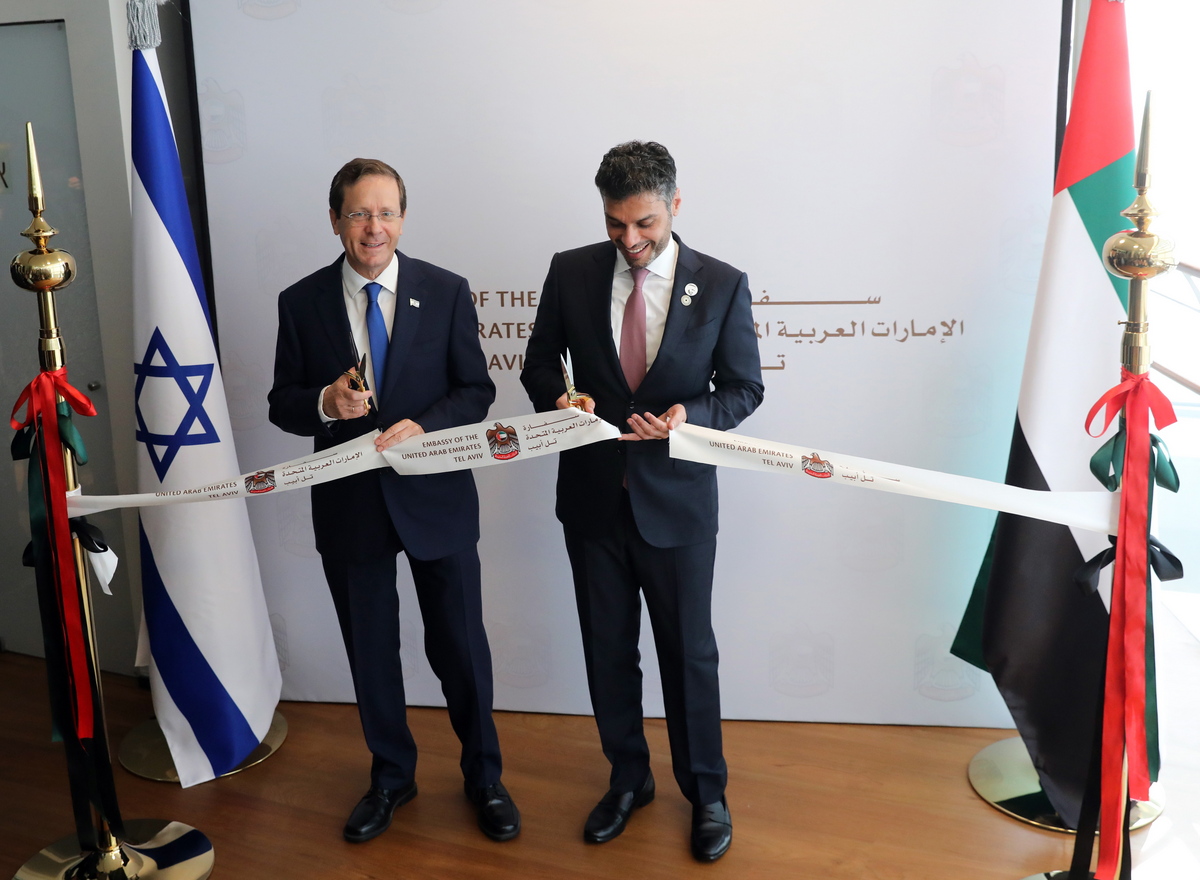 Τα Ηνωμένα Αραβικά Εμιράτα έγιναν η πρώτη χώρα του Κόλπου που άνοιξε πρεσβεία στο Ισραήλ, ενώ ο απεσταλμένος τους χαιρέτισε τις εμπορικές και επενδυτικές ευκαιρίες που θα φέρουν οι στενότερες σχέσεις, στη διάρκεια τελετής στην οποία παρευρέθη ο ισραηλινός πρόεδρος.