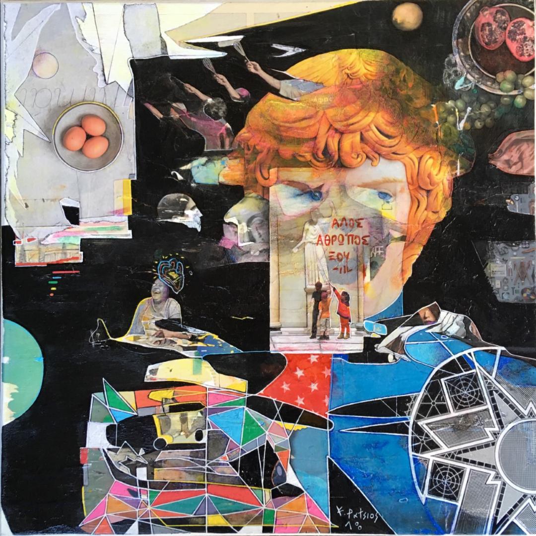 Η ιστορικός τέχνης Λουϊζα Καραπιδάκη σημειώνει για την έκθεση: «Ο Κωνσταντίνος Πάτσιος παρουσιάζει την τελευταία ενότητα των έργων του, κυρίως κολλάζ με μικτές τεχνικές και επιζωγραφήσεις. Αυτή τη φορά επιλέγει καμβάδες μεγάλων διαστάσεων. Του δίδεται έτσι η δυνατότητα να αξιοποιήσει τις μορφοπλαστικές του αξίες, συνδυάζοντας δεξιοτεχνικά έτοιμες εικόνες με τις δικές του επεμβάσεις και συνθέσεις. Επιμένει να χρησιμοποιεί αναγνωρίσιμα μοτίβα από κλασικά έργα της ιστορίας της τέχνης, αλλά με τις προσθήκες και τις αναμείξεις τους αποδίδει νέες παραστατικές αξίες. Πρόσωπα, τοπία και σύμβολα, αναγνωρίσιμα ή υπαινικτικά εμπλουτίζονται με τις ζωγραφικές του παρεμβάσεις και παραπέμπουν σε ιστορικές αναφορές, επινοούν σχολιασμούς ή δημιουργούν συμβολικές αλληγορίες. Πολλά είναι και τα αυτοβιογραφικά στοιχεία που παραθέτει, χρησιμοποιώντας ακόμα και προσωπικά αντικείμενα ως σημείο αναφοράς και ημερολόγιο. Ο ίδιος χαρακτηρίζει τη δουλειά του ως «καταβύθιση στο ασυνείδητο» γιατί επαναλαμβάνει συστηματικά το μαύρο στοιχείο ως έκφραση του ασυνείδητου, του ονείρου, του απόλυτου κενού, του τέλους, του θανάτου. Αποτελεί επίσης φόρο τιμής στους Γερμανούς ρομαντικούς του 18ου αιώνα, που έφεραν στο φως τα ασυνείδητα φαινόμενα, όπως τα καταπιεσμένα συναισθήματα, τις αυτόματες δεξιότητες, τις κρυφές φοβίες και τις επιθυμίες. Ο Πάτσιος συνεχίζει με την αναγνωρίσιμη γραφή του να πλάθει νέες αντικειμενικές πραγματικότητες, α-χρονες και να τις μετατρέπει σε εντυπωσιακές εικαστικές διατυπώσεις με πολυδιάστατο περιεχόμενο».