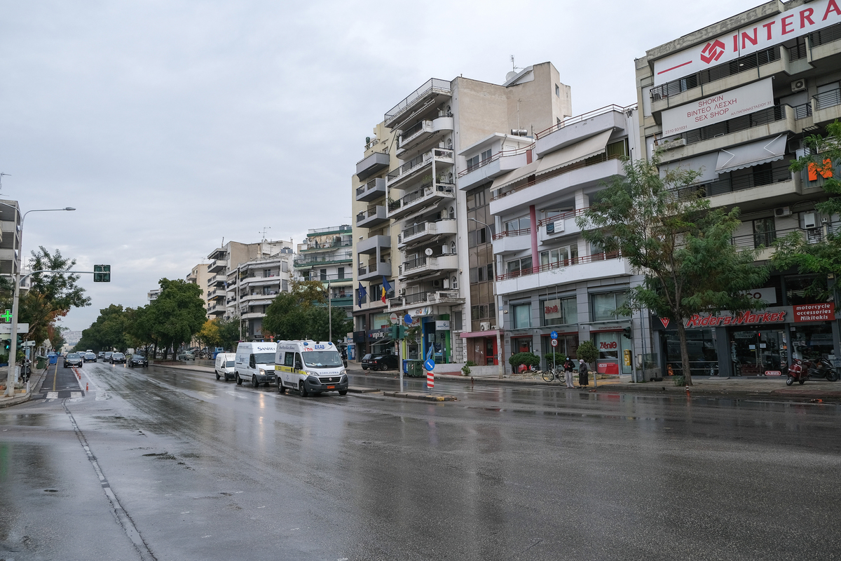 Η πρώτη μέρα εφαρμογής των μέτρων βρήκε την πόλη με βροχερό καιρό και άδεια.