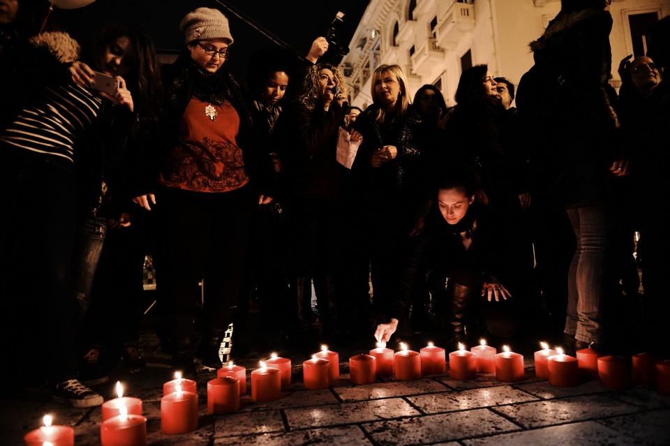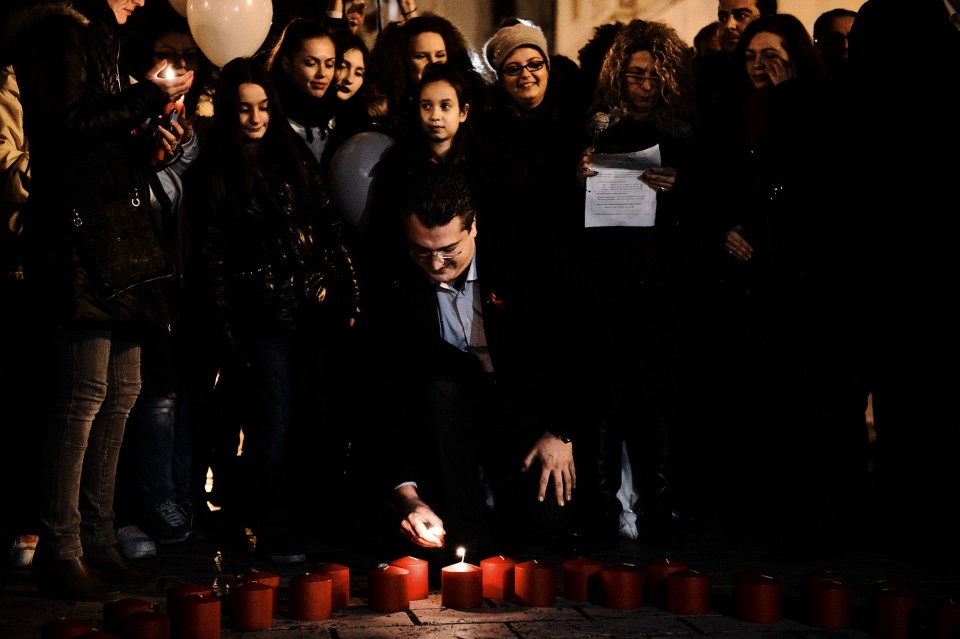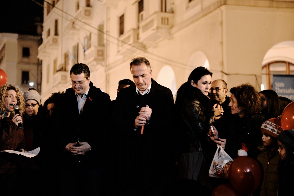 Members of volunteer organizations and citizens of Thessaloniki lit red candles in Aristotelous Square in Thessaloniki as part of the events about the World AIDS Day / Εκδήλωση για την Παγκόσμια Μέρα κατά του AIDS στη Θεσσαλονίκη