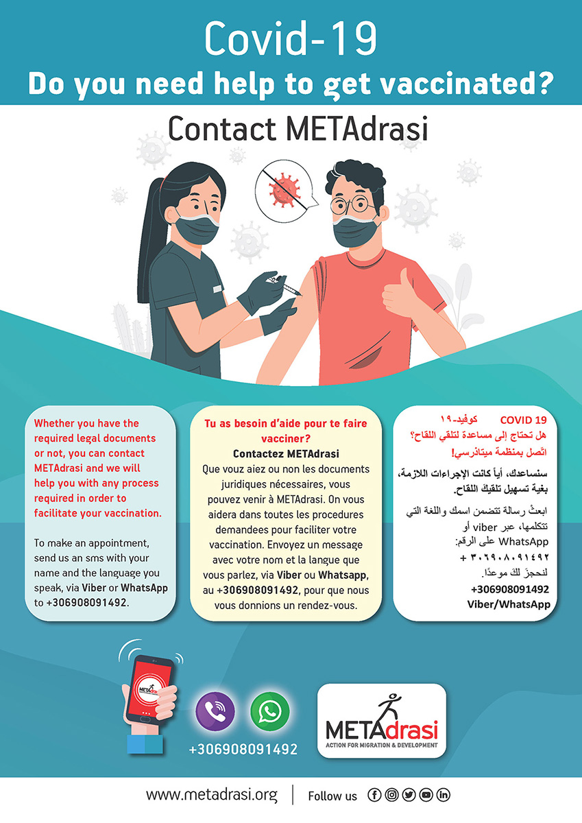 Η ΜΕΤΑδραση θα συνεχίσει τη λειτουργία του helpdesk και δεσμεύεται ότι θα στηρίξει κάθε θετική προσπάθεια προς την κατεύθυνση της διευκόλυνσης του εμβολιασμού του συνόλου των προσφύγων και μεταναστών που βρίσκονται στην χώρα.