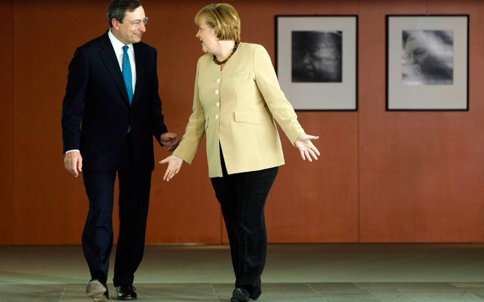 Τη θέση αυτή φέρεται να επανέλαβε ο κ. Ντράγκι και στη Γερμανίδα καγκελάριο, σημειώνοντας ότι από τη στιγμή που δεν συντρέχουν αυτές οι προϋποθέσεις, ο ίδιος και η ΕΚΤ δεν έχουν περιθώρια να αναλάβουν πρωτοβουλίες. Αλλά η κ. Μέρκελ είναι προφανώς αποφασισμένη να απομακρύνει το ελληνικό πρόβλημα από τον προεκλογικό ορίζοντα της Γερμανίας και να προσφέρει τη συγκεκριμενοποίηση του χρέους, που ζητεί η Φρανκφούρτη, αλλά και το ΔΝΤ.