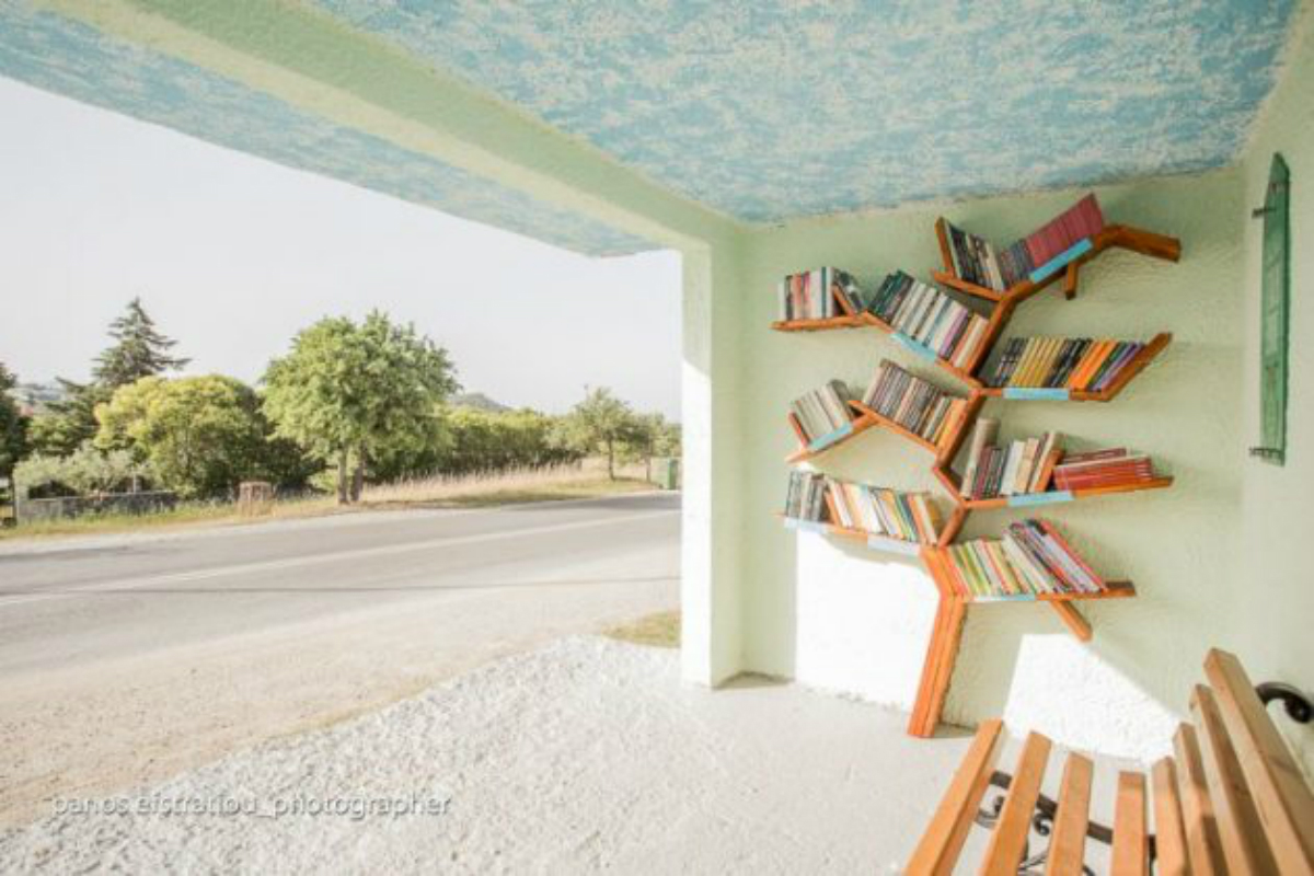 Στη στάση «προέδρου Χαράλαμπος Παπαδόπουλος-Κούνιες» σε στεγασμένο χώρο, διαμορφώθηκε μια όμορφη βιβλιοθήκη, όπου κάθε πολίτης μπορεί να επιλέξει το βιβλίο που θέλει και να γεμίσει τον χρόνο αναμονής του μέχρι να έρθει το λεωφορείο της γραμμής, αλλά και στη συνέχεια να το κρατήσει μαζί του σε όλη τη διαδρομή.