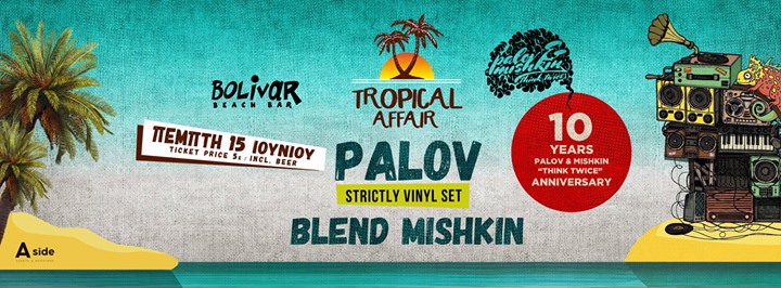 Σε μια ιδιαίτερη στιγμή για τη σκηνή της χωράς 2 ιστορικοί Dj θα συμπράξουν στο εξωτικό booth του Bolivar Beach Bar γιορτάζοντας τα 10 χρόνια από την κυκλοφορία του σπουδαίου «Think Twice» του album που τοποθέτησε τους Palov και Mishkin στο χάρτη της διεθνούς latin, cumbia, afro σκηνής.