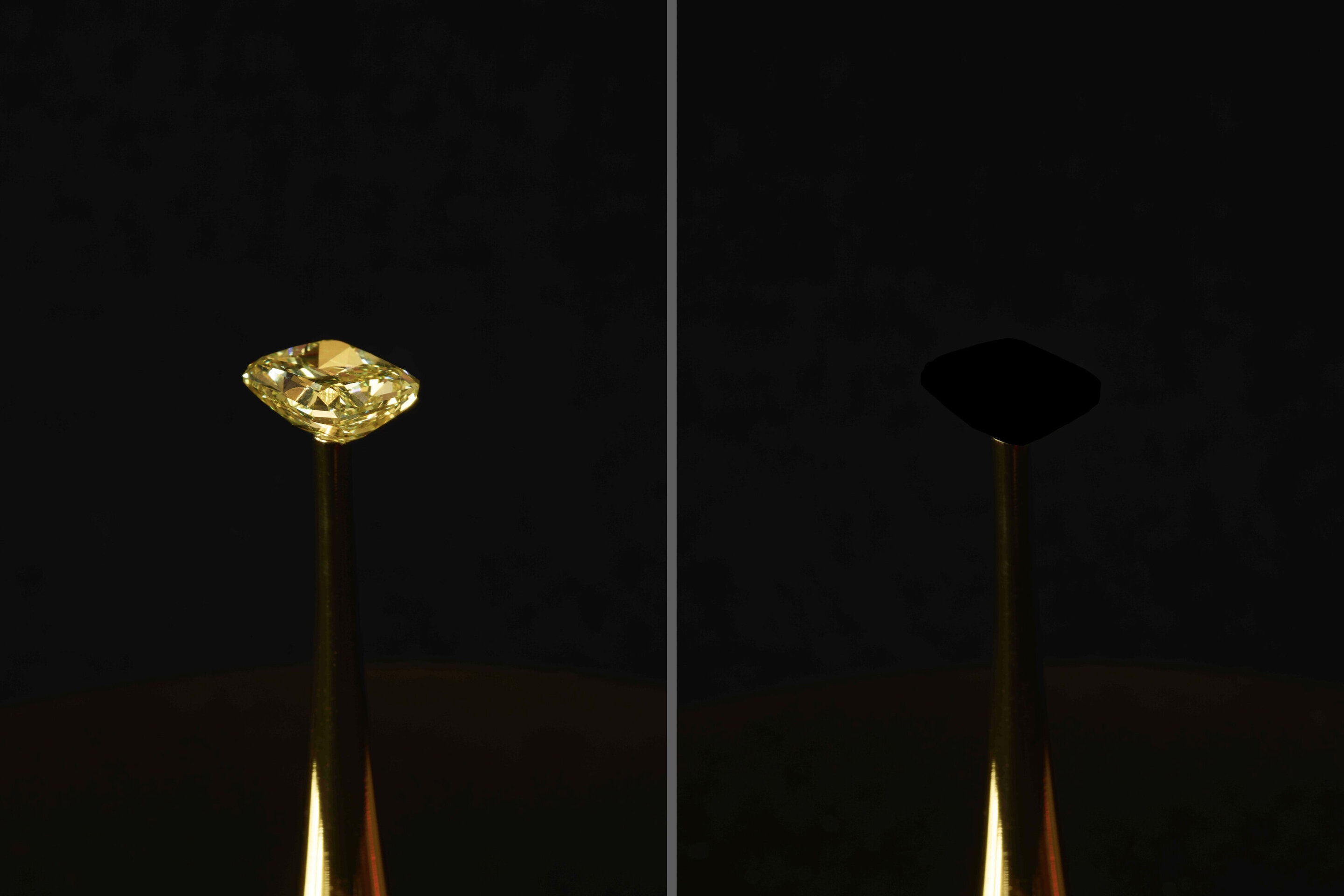 Κάνοντας επίδειξη των δυνατοτήτων του νέου υλικού, οι επιστήμονες κάλυψαν με αυτό το υλικό, σαν μανδύα, ένα φυσικό διαμάντι 16,8 καρατίων, κάνοντας το να «εξαφανιστεί» από την κοινή θέα. Μάλιστα το πείραμα παρουσιάζεται σε νέα έκθεση έργων τέχνης στο Χρηματιστήριο της Νέας Υόρκης και οι επιστήμονες δήλωσαν ότι θα διαθέσουν δωρεάν το κατάμαυρο υλικό τους σε όποιον καλλιτέχνη θέλει να το αξιοποιήσει για μη κερδοσκοπικούς σκοπούς.