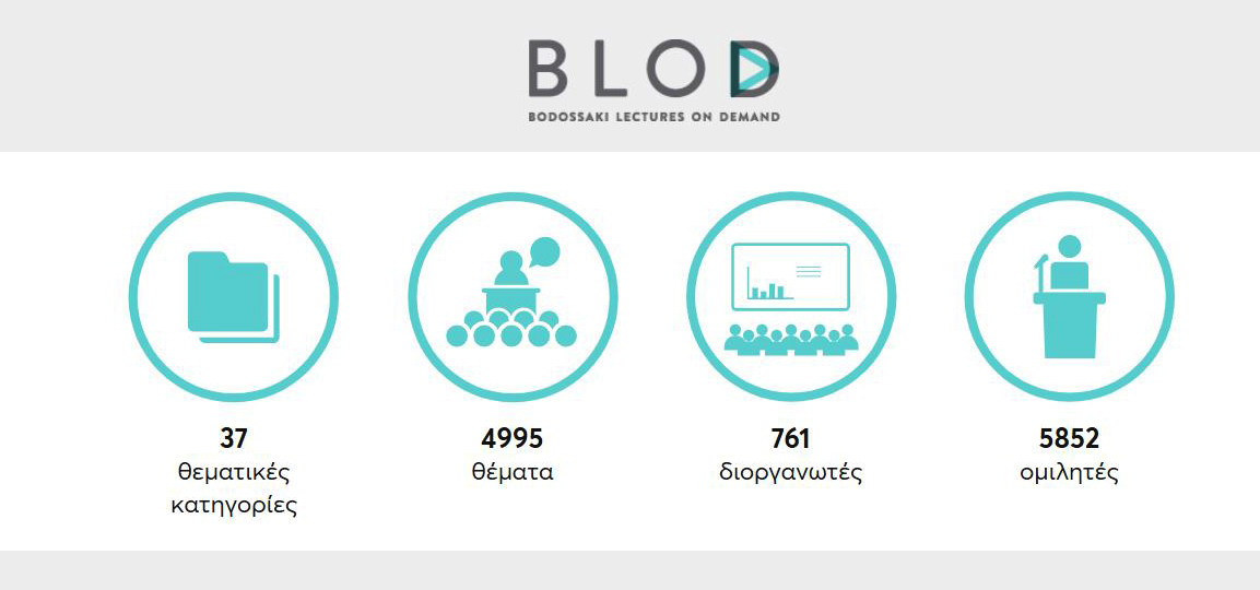 Ο ιστότοπος BLOD είναι ο μοναδικός στη χώρα μας – και ένας από τους λίγους διεθνώς – που προβάλλει αποκλειστικά διαλέξεις. Δημιουργήθηκε τον Οκτώβριο του 2011 με πρωτοβουλία και δαπάνες του Ιδρύματος Μποδοσάκη και εντάσσεται στο πλαίσιο του πρωταρχικού στόχου του Ιδρύματος για την προαγωγή της παιδείας στην Ελλάδα. Στα 9 χρόνια της παρουσίας του BLOD στο διαδίκτυο έχουν καταγραφεί χιλιάδες ώρες διαλέξεων, που κάτω από άλλες συνθήκες δεν θα είχαν διασωθεί. Πρόκειται για μια κοινωνική προσφορά χωρίς κερδοσκοπικό χαρακτήρα – όπως κάθε προσφορά του Ιδρύματος, η οποία αποσκοπεί στη διάδοση της γνώσης και του πνευματικού προβληματισμού στον τόπο μας, μέσω της αξιοποίησης της σύγχρονης τεχνολογίας.