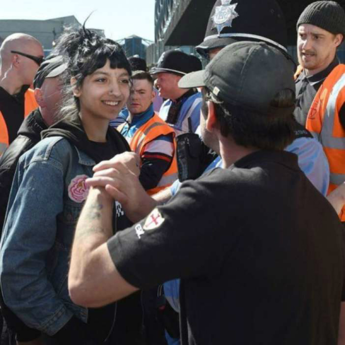 Σύμφωνα με το BBC, το νεαρό κορίτσι μπήκε μπροστά στον εξαγριωμένο Ian Crossland, ηγέτη του ακροδεξιού English Defence League, όταν είδε πως περίπου 25 άντρες είχαν περικυκλώσει μια άλλη γυναίκα που φορούσε χιτζάμπ και φώναξε τη λέξη «Ισλαμοφοβία» προς το μέρος των συγκεντρωμένων του EDL.