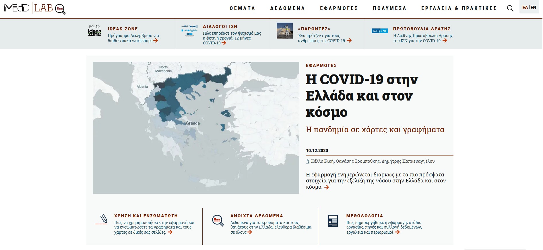 Ακόμα, αναπτύσσονται εφαρμογές, όπως αυτή που παρακολουθεί με χάρτες, γραφήματα και πίνακες, την εξάπλωση της COVID-19 στην Ελλάδα και τον υπόλοιπο κόσμο, και φιλοξενούνται απόψεις και συνεντεύξεις από εξειδικευμένους επαγγελματίες με θεματολογία σχετική με τα ΜΜΕ.
