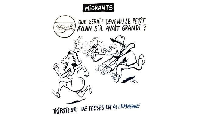 «Τι θα γινόταν ο μικρός Αϊλάν αν είχε μεγαλώσει;», αναρωτιέται ο σκιτσογράφος που εικονογραφεί πρόσφυγες με πρόσωπο μαϊμούς να κυνηγούν Γερμανίδες γυναίκες. Και η λεζάντα του σκίτσου απαντά: «Θωπευτής οπισθίων στη Γερμανία». Οι αντιδράσεις στο σκίτσο που πάνω αριστερά εικονογραφούσε μάλιστα και την εικόνα του μικρού παιδιού όπως βρέθηκε στις ακτές της μεσογείου, προκάλεσε έντονες αντιδράσεις από τους χρήστες του διαδικτύου. Οι περισσότεροι από τους επικριτές αναφέρθηκαν στο γεγονός πως παρουσιάζεται ένα τρίχρονο παιδάκι που μάλιστα έχει πεθάνει ως άτομο που επιδίδεται σε σεξουαλικές επιθέσεις, ενώ δεν έλειψαν και οι αναφορές σε ρατσισμό.