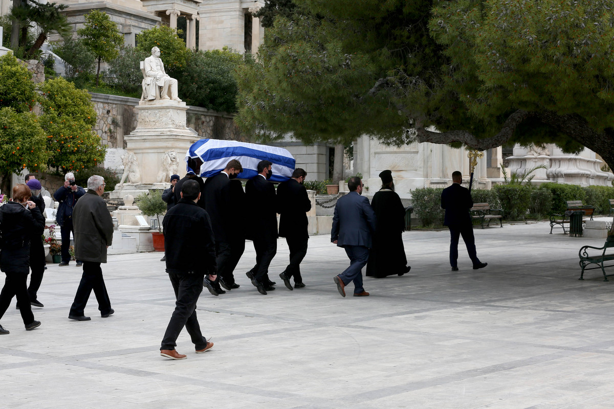 Την εξόδιο ακολουθία τέλεσε, στο παρεκλήσσι της Μητρόπολης, ο αρχιεπίσκοπος Αθηνών Ιερώνυμος, ο οποίος αναφέρθηκε στο “σύμβολο της Αντίστασης”.